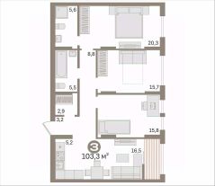 Трехкомнатная квартира площадью 103,3 кв.м. Выполнена улучшенная черновая отделка. Кухня-гостиная площадью 24 м². Три полноценные спальни и два санузла. Вместительная гардеробная в прихожей забирает на себя всё хранение, оставляя жилое пространство свободным. Жилой комплекс на Республики — это точка идеального баланса. 1015 минут, и вы в самом центре. Вы всегда в ритме города, но живете в тишине и безопасности закрытого двора. Способы покупки: - обмен вашей квартиры на эту - наличный расчет - ипотека Записаться на просмотр можно по телефону. Квартира оформлена на юр.лицо Брусника Обмен и была выкуплена нами в обмен на новую в проекте Брусники. Квартира прошла полную юридическую проверку, не имеет задолженностей и долей несовершеннолетних детей. Все документы полностью готовы к сделке. Номер квартиры в нашей базе: ТМН010420.