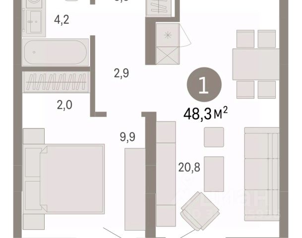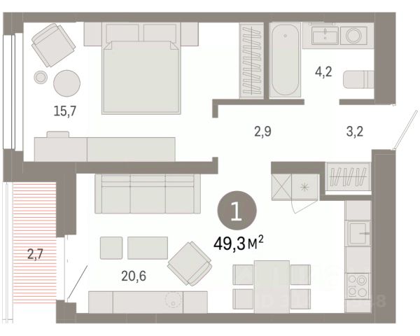 1-комн. квартира с предчистовой отделкой в ЖК "Нефть" на 6 этаже. Общая площадь: 49.3 кв.м., жилая: 15.7 кв.м., площадь просторной кухни-гостиной: 20.6 кв.м. Все окна выходят на одну сторону. В квартире одна лоджия, один совмещенный санузел. Высота потолков 2.7 м. Дом монолитный, многоподъездный, переменной этажности, от 7 до 17 этажей. Квартира находится в 1-й секции высотой 7 этажей в корпусе 1. На этаже 10 квартир. В подъезде 1 грузовой лифт. Окончание строительства - 2 квартал 2027 года. Оформление сделки по договору долевого участия. Квартира с кухней-гостиной и одной спальней в квартале "Нефть". Особенности планировки: предчистовая отделка, балкон. квартиры в нашей базе: НФТ01-Ж1.6.3. Квартал "Нефть" построят в микрорайоне "нефтяников". Квартал состоит из четырёх жилых домов 7 — 9 этажей с акцентной башней в 17 этажей, подземными автостоянками и помещениями коммерческого назначения. Квартал находится в юго-западной части Сургута на пересечении Набережного проспекта и улицы Артёма. В районе уже сформированная инфраструктура. Рядом расположены три детских сада, университеты, парк и спортивная база. На первых этажах квартала спроектированы коммерческие помещения под повседневные сервисы для жителей: магазины, кафе, аптеки и другие полезные функции. Дом имеет переменную высотность 717 этажей. Секции высотой 7-9 этажей подразумевают небольшое количество соседей, спокойствие и приватность. Башня высотой в 17 этажей предлагает более динамичный характер проживания, здесь будет комфортно любителям активного городского ритма жизни. Дворы приватные и предназначены только для жителей. По стандартам Брусники зелень занимает 70% территории. В квартале "Нефть" озеленение выполнено по принципу долголетия ландшафта: оно плотное, разнообразное и многоярусное. Самый верхний ярус — взрослые деревья со сформированной кроной и высокие кустарники, ниже располагаются массивы кустарников среднего размера, нижний ярус — травы, многолетники и газон. Все растения подобраны с учётом сезонности и календаря цветения и сурового климата северного города. Осенью цвет ландшафта обеспечивает листва деревьев и кустарников, летом — цветение многолетников, зимой — вечнозелёные хвойные растения и кустарники с декоративными свойствами стеблей. #ZsBIua Продается 1-комнатная квартира 50 м2 в Сургуте.