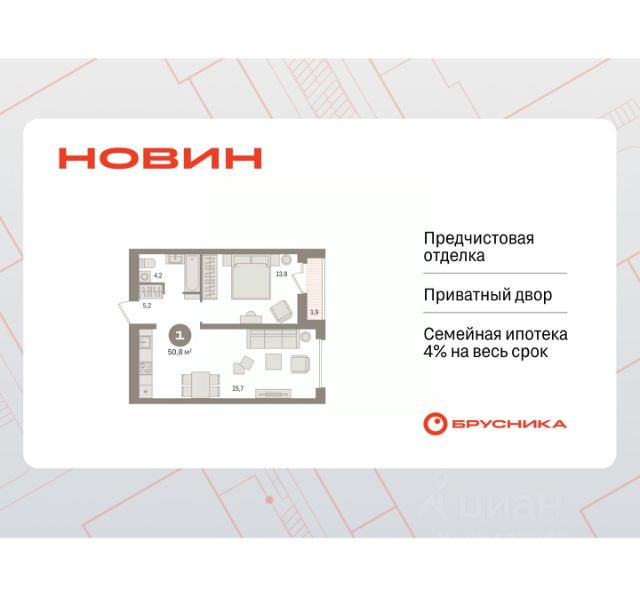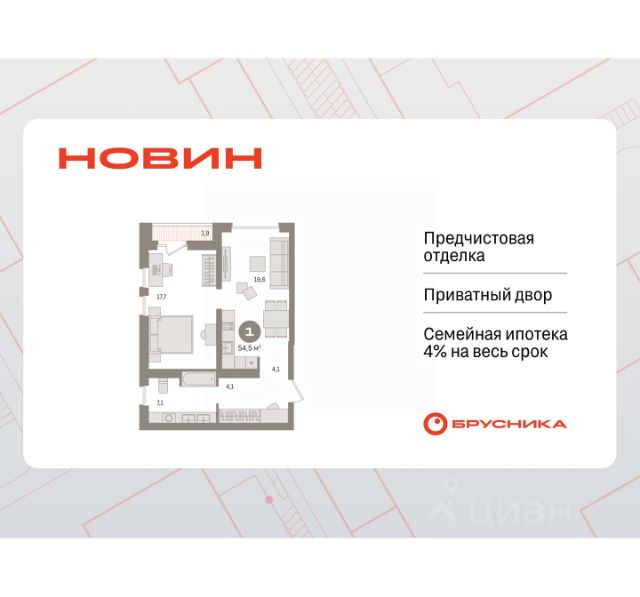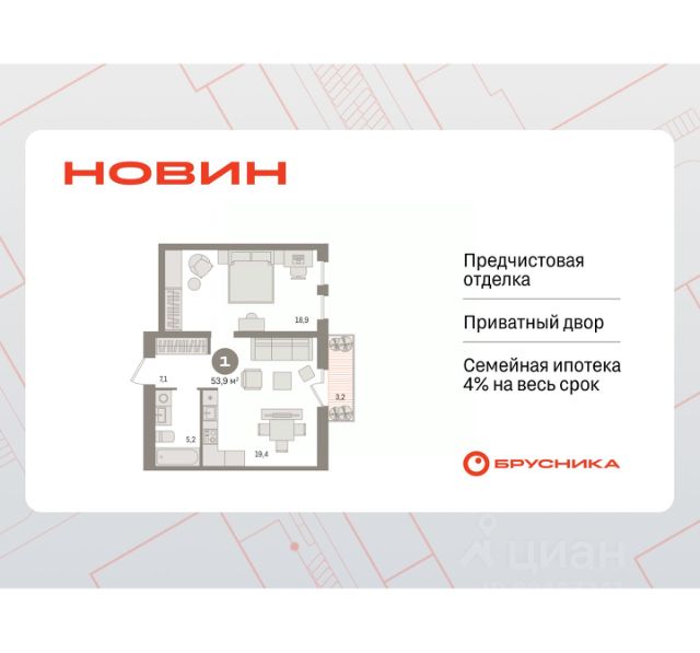 Готовые квартиры со скидкой до 35%. Информация по телефону, мы вам все подробно расскажем! 1-комн. квартира с предчистовой отделкой в ЖК "Новин" на 10 этаже. Общая площадь: 53.87 кв.м., жилая: 18.9 кв.м., площадь просторной кухни-гостиной: 19.4 кв.м. Все окна выходят на одну сторону. В квартире один балкон, один совмещенный санузел. Высота потолков 2.7 м. Дом монолитный, многоподъездный, переменной этажности, от 8 до 17 этажей. Квартира находится в 1-й секции высотой 15 этажей в корпусе 7. На этаже 7 квартир. В подъезде 1 пассажирский и 1 грузовой лифт. Окончание строительства - 2 квартал 2027 года. Оформление сделки по договору долевого участия. Квартира с кухней-гостиной и одной спальней в квартале "Новин". Особенности планировки: балкон, вид во двор, предчистовая отделка. квартиры в нашей базе: НСВ07-Ж1.10.7. Квартал "Новин" расположен на западе Сургута в районе с хорошо развитой инфраструктурой. Рядом — парк "Кедровый Лог", детские сады, поликлиника, продуктовые магазины и торговые центры. До центра города — 20 минут на автомобиле. Пять домов уже заселены. Ещё три находятся на этапе возведения. Квартал находится в западной части Сургута на пересечении Югорского тракта и улицы Игоря Киртбая. Можно быстро добраться до любой точки города по Югорскому тракту. В районе уже сформированная инфраструктура. Рядом расположены крупные торговые центры, три детских сада, поликлиника, парк и спортивная база. На первых этажах квартала спроектированы коммерческие помещения под повседневные сервисы для жителей: магазины, кафе, аптеки и другие полезные функции. Проектом развития территории предусмотрено строительство детского сада и общеобразовательной школы. Во дворах предусмотрены сценарии для разных категорий жителей, в том числе и площадки для тихого отдыха с фонтаном и арт объектом. Детская площадка раскрывает игровой потенциал территории за счёт разных возможных типов взаимодействий, среди которых присутствуют: контакт с природой, смена уровня игры и контролируемый риск, сотрудничество и игра в команде, а также спокойный сценарий с качелями. Между домами второй очереди мы спроектировали общественное пространство. Здесь также расположатся спортивные и игровые площадки, велопарковки и площадь событий. Главной точкой притяжения станет фонтан. #zwEbWE
