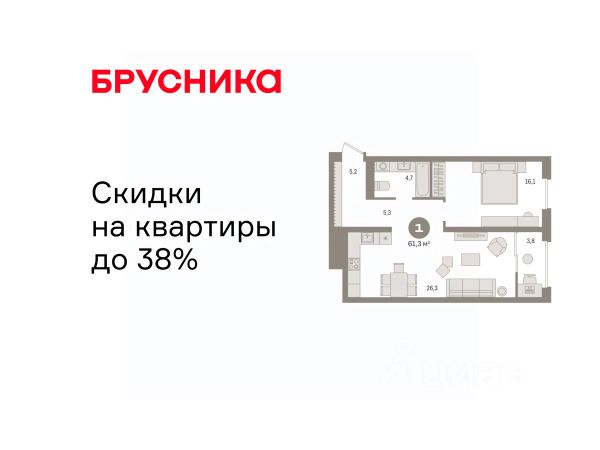 Однокомнатная квартира от застройщика с предчистовой отделкой в ЖК "Нефть" на 12 этаже. Общая площадь: 47.3 кв.м., жилая: 11.3 кв.м., площадь просторной кухни-гостиной: 19.7 кв.м. Все окна выходят на одну сторону. В квартире одна лоджия, один совмещенный санузел. Высота потолков 2.7 м. Дом монолитный, многоподъездный, переменной этажности, от 7 до 17 этажей. Квартира находится в 3-й секции высотой 17 этажей в корпусе 1. На этаже 8 квартир. В подъезде 1 пассажирский и 1 грузовой лифт. Окончание строительства - 2 квартал 2027 года. Оформление сделки по договору долевого участия. Квартира с кухней-гостиной и одной спальней в квартале "Нефть". Особенности планировки: предчистовая отделка. квартиры в нашей базе: НФТ01-Ж3.12.3. Квартал "Нефть" построят в микрорайоне "нефтяников". Квартал состоит из четырёх жилых домов 7 — 9 этажей с акцентной башней в 17 этажей, подземными автостоянками и помещениями коммерческого назначения. Квартал находится в юго-западной части Сургута на пересечении Набережного проспекта и улицы Артёма. В районе уже сформированная инфраструктура. Рядом расположены три детских сада, университеты, парк и спортивная база. На первых этажах квартала спроектированы коммерческие помещения под повседневные сервисы для жителей: магазины, кафе, аптеки и другие полезные функции. Дом имеет переменную высотность 717 этажей. Секции высотой 7-9 этажей подразумевают небольшое количество соседей, спокойствие и приватность. Башня высотой в 17 этажей предлагает более динамичный характер проживания, здесь будет комфортно любителям активного городского ритма жизни. Дворы приватные и предназначены только для жителей. По стандартам Брусники зелень занимает 70% территории. В квартале "Нефть" озеленение выполнено по принципу долголетия ландшафта: оно плотное, разнообразное и многоярусное. Самый верхний ярус — взрослые деревья со сформированной кроной и высокие кустарники, ниже располагаются массивы кустарников среднего размера, нижний ярус — травы, многолетники и газон. Все растения подобраны с учётом сезонности и календаря цветения и сурового климата северного города. Осенью цвет ландшафта обеспечивает листва деревьев и кустарников, летом — цветение многолетников, зимой — вечнозелёные хвойные растения и кустарники с декоративными свойствами стеблей. #2SbizC
