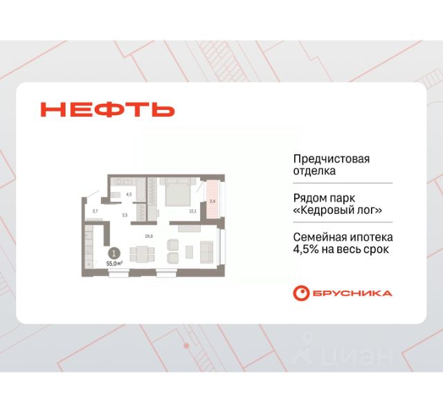 Продается 1-комн. квартира с предчистовой отделкой в ЖК "Нефть" на 13 этаже. Общая площадь: 47.3 кв.м., жилая: 11.3 кв.м., площадь просторной кухни-гостиной: 19.7 кв.м. Все окна выходят на одну сторону. В квартире одна лоджия, один совмещенный санузел. Высота потолков 2.7 м. Дом монолитный, многоподъездный, переменной этажности, от 7 до 17 этажей. Квартира находится в 3-й секции высотой 17 этажей в корпусе 1. На этаже 8 квартир. В подъезде 1 пассажирский и 1 грузовой лифт. Окончание строительства - 2 квартал 2027 года. Оформление сделки по договору долевого участия. Квартира с кухней-гостиной и одной спальней в квартале "Нефть". Особенности планировки: гардеробная, лоджия, предчистовая отделка. квартиры в нашей базе: НФТ01-Ж3.13.3. Квартал "Нефть" построят в микрорайоне "нефтяников". Квартал состоит из четырёх жилых домов 7 — 9 этажей с акцентной башней в 17 этажей, подземными автостоянками и помещениями коммерческого назначения. Квартал находится в юго-западной части Сургута на пересечении Набережного проспекта и улицы Артёма. В районе уже сформированная инфраструктура. Рядом расположены три детских сада, университеты, парк и спортивная база. На первых этажах квартала спроектированы коммерческие помещения под повседневные сервисы для жителей: магазины, кафе, аптеки и другие полезные функции. Дом имеет переменную высотность 717 этажей. Секции высотой 7-9 этажей подразумевают небольшое количество соседей, спокойствие и приватность. Башня высотой в 17 этажей предлагает более динамичный характер проживания, здесь будет комфортно любителям активного городского ритма жизни. Дворы приватные и предназначены только для жителей. По стандартам Брусники зелень занимает 70% территории. В квартале "Нефть" озеленение выполнено по принципу долголетия ландшафта: оно плотное, разнообразное и многоярусное. Самый верхний ярус — взрослые деревья со сформированной кроной и высокие кустарники, ниже располагаются массивы кустарников среднего размера, нижний ярус — травы, многолетники и газон. Все растения подобраны с учётом сезонности и календаря цветения и сурового климата северного города. Осенью цвет ландшафта обеспечивает листва деревьев и кустарников, летом — цветение многолетников, зимой — вечнозелёные хвойные растения и кустарники с декоративными свойствами стеблей. #Z4eT9w Купить 1-комнатную квартиру на 13 этаже в Сургуте.