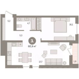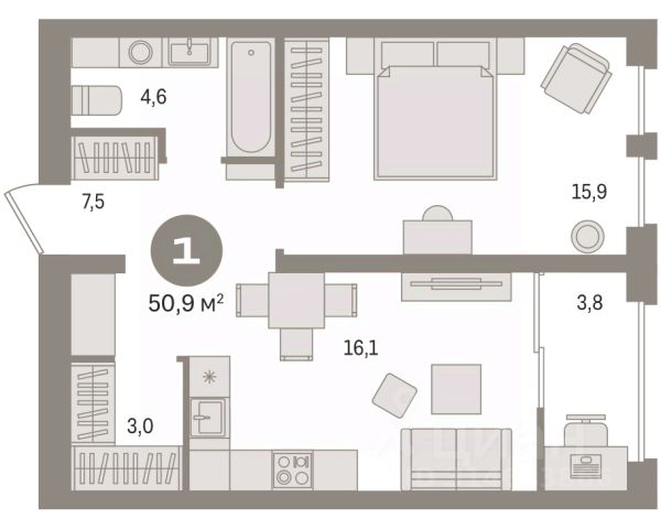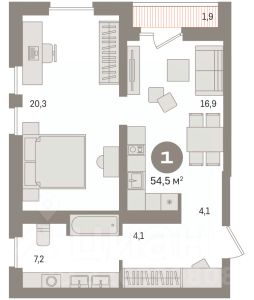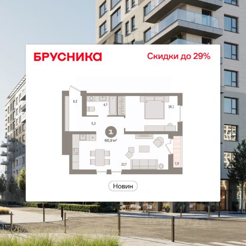 Продается однокомнатная квартира от застройщика с предчистовой отделкой в ЖК "Новин" на 16 этаже. Общая площадь: 54.47 кв.м., жилая: 20.3 кв.м., площадь просторной кухни-гостиной: 16.9 кв.м. Квартира угловая, окна oбecпeчивaют paвнoмepнoe ocвeщeниe в тeчeниe дня. В квартире одна лоджия, один совмещенный санузел. Высота потолков 2.7 м. Дом монолитный, многоподъездный, переменной этажности, от 8 до 17 этажей. Квартира находится в 4-й секции высотой 17 этажей в корпусе 7. На этаже 6 квартир. В подъезде 1 пассажирский и 1 грузовой лифт. Окончание строительства - 2 квартал 2027 года. Оформление сделки по договору долевого участия. Квартира с кухней-гостиной и одной спальней в квартале "Новин". Особенности планировки: вид во двор, гардеробная, лоджия, мастер-спальня, окно в санузле, предчистовая отделка. квартиры в нашей базе: НСВ07-Ж4.16.1. Квартал "Новин" расположен на западе Сургута в районе с хорошо развитой инфраструктурой. Рядом — парк "Кедровый Лог", детские сады, поликлиника, продуктовые магазины и торговые центры. До центра города — 20 минут на автомобиле. Пять домов уже заселены. Ещё три находятся на этапе возведения. Квартал находится в западной части Сургута на пересечении Югорского тракта и улицы Игоря Киртбая. Можно быстро добраться до любой точки города по Югорскому тракту. В районе уже сформированная инфраструктура. Рядом расположены крупные торговые центры, три детских сада, поликлиника, парк и спортивная база. На первых этажах квартала спроектированы коммерческие помещения под повседневные сервисы для жителей: магазины, кафе, аптеки и другие полезные функции. Проектом развития территории предусмотрено строительство детского сада и общеобразовательной школы. Во дворах предусмотрены сценарии для разных категорий жителей, в том числе и площадки для тихого отдыха с фонтаном и арт объектом. Детская площадка раскрывает игровой потенциал территории за счёт разных возможных типов взаимодействий, среди которых присутствуют: контакт с природой, смена уровня игры и контролируемый риск, сотрудничество и игра в команде, а также спокойный сценарий с качелями. Между домами второй очереди мы спроектировали общественное пространство. Здесь также расположатся спортивные и игровые площадки, велопарковки и площадь событий. Главной точкой притяжения станет фонтан. #z4eb3M