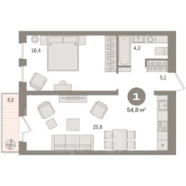 Просторная 1-комн. квартира с предчистовой отделкой в ЖК "Новин" на 2 этаже. Общая площадь: 51.24 кв.м., жилая: 16.3 кв.м., площадь просторной кухни-гостиной: 23 кв.м. Все окна выходят на одну сторону. В квартире одна лоджия, один совмещенный санузел. Высота потолков 2.7 м. Дом монолитный, многоподъездный, переменной этажности, от 8 до 17 этажей. Квартира находится во 2-й секции высотой 9 этажей в корпусе 7. На этаже 7 квартир. В подъезде 1 пассажирский и 1 грузовой лифт. Окончание строительства - 2 квартал 2027 года. Оформление сделки по договору долевого участия. Квартира с кухней-гостиной и одной спальней в квартале "Новин". Особенности планировки: лоджия, предчистовая отделка. квартиры в нашей базе: НСВ07-Ж2.2.3. Квартал "Новин" расположен на западе Сургута в районе с хорошо развитой инфраструктурой. Рядом — парк "Кедровый Лог", детские сады, поликлиника, продуктовые магазины и торговые центры. До центра города — 20 минут на автомобиле. Пять домов уже заселены. Ещё три находятся на этапе возведения. Квартал находится в западной части Сургута на пересечении Югорского тракта и улицы Игоря Киртбая. Можно быстро добраться до любой точки города по Югорскому тракту. В районе уже сформированная инфраструктура. Рядом расположены крупные торговые центры, три детских сада, поликлиника, парк и спортивная база. На первых этажах квартала спроектированы коммерческие помещения под повседневные сервисы для жителей: магазины, кафе, аптеки и другие полезные функции. Проектом развития территории предусмотрено строительство детского сада и общеобразовательной школы. Во дворах предусмотрены сценарии для разных категорий жителей, в том числе и площадки для тихого отдыха с фонтаном и арт объектом. Детская площадка раскрывает игровой потенциал территории за счёт разных возможных типов взаимодействий, среди которых присутствуют: контакт с природой, смена уровня игры и контролируемый риск, сотрудничество и игра в команде, а также спокойный сценарий с качелями. Между домами второй очереди мы спроектировали общественное пространство. Здесь также расположатся спортивные и игровые площадки, велопарковки и площадь событий. Главной точкой притяжения станет фонтан. #zSBIws