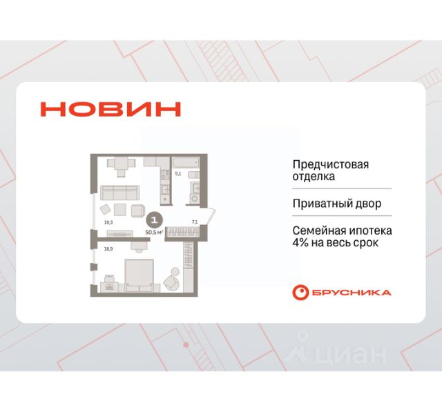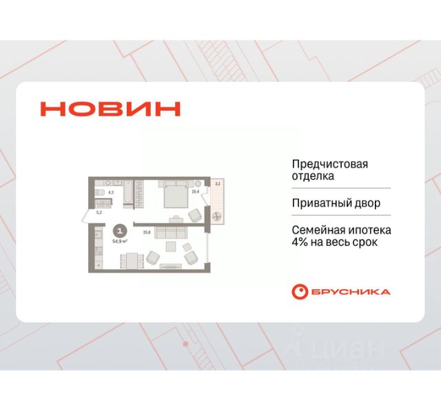 Готовые квартиры со скидкой до 35%. Звоните, мы вам все подробно расскажем! Продается 1-комн. квартира от застройщика с предчистовой отделкой в ЖК "Новин" на 4 этаже. Общая площадь: 53.89 кв.м., жилая: 18.9 кв.м., площадь просторной кухни-гостиной: 19.4 кв.м. Все окна выходят на одну сторону. В квартире один балкон, один совмещенный санузел. Высота потолков 2.7 м. Дом монолитный, многоподъездный, переменной этажности, от 8 до 17 этажей. Квартира находится в 1-й секции высотой 15 этажей в корпусе 7. На этаже 7 квартир. В подъезде 1 пассажирский и 1 грузовой лифт. Окончание строительства - 2 квартал 2027 года. Оформление сделки по договору долевого участия. Квартира с кухней-гостиной и одной спальней в квартале "Новин". Особенности планировки: балкон, вид во двор, предчистовая отделка. квартиры в нашей базе: НСВ07-Ж1.4.7. Квартал "Новин" расположен на западе Сургута в районе с хорошо развитой инфраструктурой. Рядом — парк "Кедровый Лог", детские сады, поликлиника, продуктовые магазины и торговые центры. До центра города — 20 минут на автомобиле. Пять домов уже заселены. Ещё три находятся на этапе возведения. Квартал находится в западной части Сургута на пересечении Югорского тракта и улицы Игоря Киртбая. Можно быстро добраться до любой точки города по Югорскому тракту. В районе уже сформированная инфраструктура. Рядом расположены крупные торговые центры, три детских сада, поликлиника, парк и спортивная база. На первых этажах квартала спроектированы коммерческие помещения под повседневные сервисы для жителей: магазины, кафе, аптеки и другие полезные функции. Проектом развития территории предусмотрено строительство детского сада и общеобразовательной школы. Во дворах предусмотрены сценарии для разных категорий жителей, в том числе и площадки для тихого отдыха с фонтаном и арт объектом. Детская площадка раскрывает игровой потенциал территории за счёт разных возможных типов взаимодействий, среди которых присутствуют: контакт с природой, смена уровня игры и контролируемый риск, сотрудничество и игра в команде, а также спокойный сценарий с качелями. Между домами второй очереди мы спроектировали общественное пространство. Здесь также расположатся спортивные и игровые площадки, велопарковки и площадь событий. Главной точкой притяжения станет фонтан. #ZWeBue