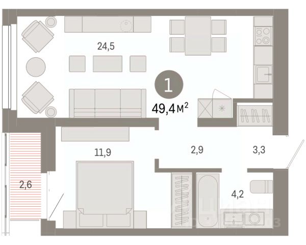 Продается уютная однокомнатная видовая квартира 196 площадью 47,8 кв.м. с двумя лоджиями и просторной кухней-гостиной площадью 18 кв.м., в жилом комплексе "Набережный". Общая площадь квартиры — 47,8 кв.м., жилая — 30,6 кв.м. Это идеальное место для комфортной жизни вашей семьи! Более того, в квартире предусмотрена большая прихожая и гардеробная, где можно легко разместить вещи всей семьи, не загромождая пространство. Уютная спальня станет вашим личным уголком для отдыха и восстановления сил. А современный совмещенный санузел площадью 4,1 кв.м. обеспечит вам удобство и пространство для повседневных забот. - Дом расположен рядом с набережной. Здесь вы сможете насладиться прогулками и активным отдыхом всей семьёй. - В доме вас ждут дизайнерские холлы с консьерж-службой и колясочные. - Ваша безопасность и сохранность имущества обеспечены системой видеонаблюдения. - Для удобства предусмотрен комфортный подземный и наземный паркинг. - Для детей разного возраста есть современные игровые и спортивные площадки с безопасным покрытием. - Также в доме есть отдельная площадка для выгула собак, а в каждом подъезде — мойка для лап. 25-этажный дом на стадии завершения строительства. В строительстве используются трёхслойные стеновые панели по финской технологии. Доступны скидки от застройщика и выгодные ипотечные программы, чтобы сделать покупку еще более доступной!