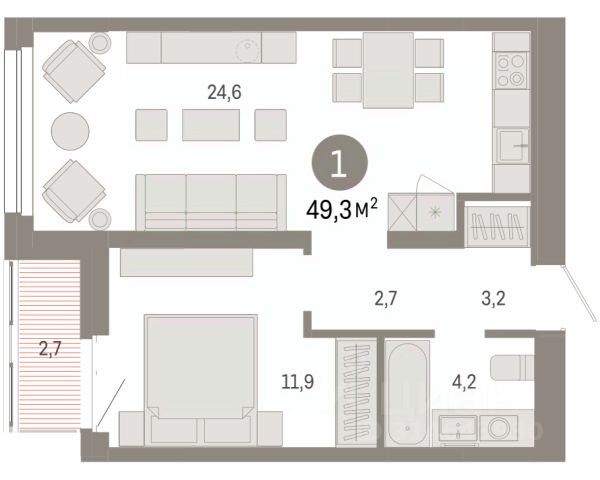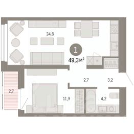 Однокомнатная квартира с предчистовой отделкой в ЖК "Нефть" на 5 этаже. Общая площадь: 47.1 кв.м., жилая: 11.3 кв.м., площадь просторной кухни-гостиной: 19.7 кв.м. Все окна выходят на одну сторону. В квартире одна лоджия, один совмещенный санузел. Высота потолков 2.7 м. Дом монолитный, многоподъездный, переменной этажности, от 7 до 17 этажей. Квартира находится в 3-й секции высотой 17 этажей в корпусе 1. На этаже 8 квартир. В подъезде 1 пассажирский и 1 грузовой лифт. Окончание строительства - 2 квартал 2027 года. Оформление сделки по договору долевого участия. Квартира с кухней-гостиной и одной спальней в квартале "Нефть". Особенности планировки: гардеробная, лоджия, предчистовая отделка. квартиры в нашей базе: НФТ01-Ж3.5.5. Квартал "Нефть" построят в микрорайоне "нефтяников". Квартал состоит из четырёх жилых домов 7 — 9 этажей с акцентной башней в 17 этажей, подземными автостоянками и помещениями коммерческого назначения. Квартал находится в юго-западной части Сургута на пересечении Набережного проспекта и улицы Артёма. В районе уже сформированная инфраструктура. Рядом расположены три детских сада, университеты, парк и спортивная база. На первых этажах квартала спроектированы коммерческие помещения под повседневные сервисы для жителей: магазины, кафе, аптеки и другие полезные функции. Дом имеет переменную высотность 717 этажей. Секции высотой 7-9 этажей подразумевают небольшое количество соседей, спокойствие и приватность. Башня высотой в 17 этажей предлагает более динамичный характер проживания, здесь будет комфортно любителям активного городского ритма жизни. Дворы приватные и предназначены только для жителей. По стандартам Брусники зелень занимает 70% территории. В квартале "Нефть" озеленение выполнено по принципу долголетия ландшафта: оно плотное, разнообразное и многоярусное. Самый верхний ярус — взрослые деревья со сформированной кроной и высокие кустарники, ниже располагаются массивы кустарников среднего размера, нижний ярус — травы, многолетники и газон. Все растения подобраны с учётом сезонности и календаря цветения и сурового климата северного города. Осенью цвет ландшафта обеспечивает листва деревьев и кустарников, летом — цветение многолетников, зимой — вечнозелёные хвойные растения и кустарники с декоративными свойствами стеблей. #zSVgA4