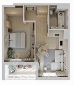 Готовые квартиры со скидкой до 35%. Звоните, наши менеджеры вам все расскажут! Однокомнатная квартира с предчистовой отделкой в ЖК "Новин" на 6 этаже. Общая площадь: 44.47 кв.м., жилая: 12 кв.м., площадь просторной кухни-гостиной: 21.1 кв.м. Все окна выходят на одну сторону. В квартире один балкон, один совмещенный санузел. Высота потолков 2.7 м. Дом монолитный, многоподъездный, переменной этажности, от 8 до 17 этажей. Квартира находится во 2-й секции высотой 9 этажей в корпусе 7. На этаже 7 квартир. В подъезде 1 пассажирский и 1 грузовой лифт. Окончание строительства - 2 квартал 2027 года. Оформление сделки по договору долевого участия. Квартира с кухней-гостиной и одной спальней в квартале "Новин". Особенности планировки: вид во двор, предчистовая отделка, балкон. квартиры в нашей базе: НСВ07-Ж2.6.7. Квартал "Новин" расположен на западе Сургута в районе с хорошо развитой инфраструктурой. Рядом — парк "Кедровый Лог", детские сады, поликлиника, продуктовые магазины и торговые центры. До центра города — 20 минут на автомобиле. Пять домов уже заселены. Ещё три находятся на этапе возведения. Квартал находится в западной части Сургута на пересечении Югорского тракта и улицы Игоря Киртбая. Можно быстро добраться до любой точки города по Югорскому тракту. В районе уже сформированная инфраструктура. Рядом расположены крупные торговые центры, три детских сада, поликлиника, парк и спортивная база. На первых этажах квартала спроектированы коммерческие помещения под повседневные сервисы для жителей: магазины, кафе, аптеки и другие полезные функции. Проектом развития территории предусмотрено строительство детского сада и общеобразовательной школы. Во дворах предусмотрены сценарии для разных категорий жителей, в том числе и площадки для тихого отдыха с фонтаном и арт объектом. Детская площадка раскрывает игровой потенциал территории за счёт разных возможных типов взаимодействий, среди которых присутствуют: контакт с природой, смена уровня игры и контролируемый риск, сотрудничество и игра в команде, а также спокойный сценарий с качелями. Между домами второй очереди мы спроектировали общественное пространство. Здесь также расположатся спортивные и игровые площадки, велопарковки и площадь событий. Главной точкой притяжения станет фонтан. #zSbiw7