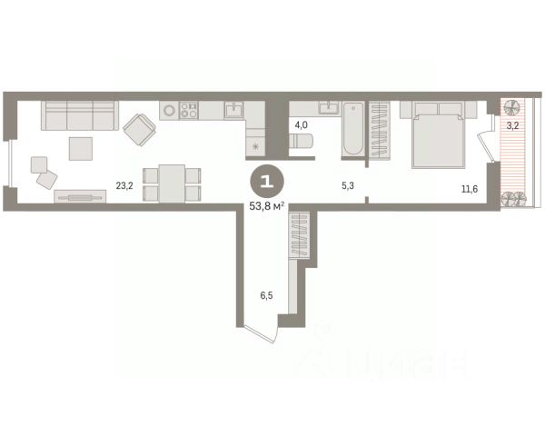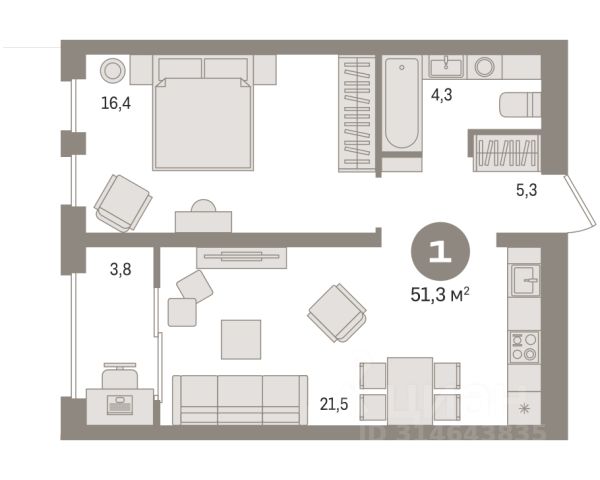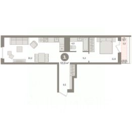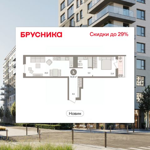 Однокомнатная квартира от застройщика с предчистовой отделкой в ЖК "Новин" на 8 этаже. Общая площадь: 53.76 кв.м., жилая: 11.6 кв.м., площадь просторной кухни-гостиной: 23.2 кв.м. Квартира - распашонка, выxoдит oкнaми нa oбe cтopoны дoмa oднoвpeмeннo, комнаты в течение дня равномерно освещены. В квартире одна лоджия, один совмещенный санузел. Высота потолков 2.7 м. Дом монолитный, многоподъездный, переменной этажности, от 8 до 17 этажей. Квартира находится в 5-й секции высотой 8 этажей в корпусе 7. На этаже 6 квартир. В подъезде 1 пассажирский и 1 грузовой лифт. Окончание строительства - 2 квартал 2027 года. Оформление сделки по договору долевого участия. Квартира с кухней-гостиной и одной спальней в квартале "Новин". Особенности планировки: вид во двор, окна на две стороны, предчистовая отделка, терраса на крыше. квартиры в нашей базе: НСВ07-Ж5.8.2. Квартал "Новин" расположен на западе Сургута в районе с хорошо развитой инфраструктурой. Рядом — парк "Кедровый Лог", детские сады, поликлиника, продуктовые магазины и торговые центры. До центра города — 20 минут на автомобиле. Пять домов уже заселены. Ещё три находятся на этапе возведения. Квартал находится в западной части Сургута на пересечении Югорского тракта и улицы Игоря Киртбая. Можно быстро добраться до любой точки города по Югорскому тракту. В районе уже сформированная инфраструктура. Рядом расположены крупные торговые центры, три детских сада, поликлиника, парк и спортивная база. На первых этажах квартала спроектированы коммерческие помещения под повседневные сервисы для жителей: магазины, кафе, аптеки и другие полезные функции. Проектом развития территории предусмотрено строительство детского сада и общеобразовательной школы. Во дворах предусмотрены сценарии для разных категорий жителей, в том числе и площадки для тихого отдыха с фонтаном и арт объектом. Детская площадка раскрывает игровой потенциал территории за счёт разных возможных типов взаимодействий, среди которых присутствуют: контакт с природой, смена уровня игры и контролируемый риск, сотрудничество и игра в команде, а также спокойный сценарий с качелями. Между домами второй очереди мы спроектировали общественное пространство. Здесь также расположатся спортивные и игровые площадки, велопарковки и площадь событий. Главной точкой притяжения станет фонтан. #2wEBvt