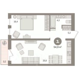 Однокомнатная квартира с предчистовой отделкой в ЖК "Новин" на 9 этаже. Общая площадь: 54.9 кв.м., жилая: 16.4 кв.м., площадь просторной кухни-гостиной: 25.8 кв.м. Все окна выходят на одну сторону. В квартире один балкон, один совмещенный санузел. Высота потолков 2.7 м. Дом монолитный, многоподъездный, переменной этажности, от 8 до 17 этажей. Квартира находится в 1-й секции высотой 15 этажей в корпусе 7. На этаже 7 квартир. В подъезде 1 пассажирский и 1 грузовой лифт. Окончание строительства - 2 квартал 2027 года. Оформление сделки по договору долевого участия. Квартира с кухней-гостиной и одной спальней в квартале "Новин". Особенности планировки: балкон, предчистовая отделка. квартиры в нашей базе: НСВ07-Ж1.9.3. Квартал "Новин" расположен на западе Сургута в районе с хорошо развитой инфраструктурой. Рядом — парк "Кедровый Лог", детские сады, поликлиника, продуктовые магазины и торговые центры. До центра города — 20 минут на автомобиле. Пять домов уже заселены. Ещё три находятся на этапе возведения. Квартал находится в западной части Сургута на пересечении Югорского тракта и улицы Игоря Киртбая. Можно быстро добраться до любой точки города по Югорскому тракту. В районе уже сформированная инфраструктура. Рядом расположены крупные торговые центры, три детских сада, поликлиника, парк и спортивная база. На первых этажах квартала спроектированы коммерческие помещения под повседневные сервисы для жителей: магазины, кафе, аптеки и другие полезные функции. Проектом развития территории предусмотрено строительство детского сада и общеобразовательной школы. Во дворах предусмотрены сценарии для разных категорий жителей, в том числе и площадки для тихого отдыха с фонтаном и арт объектом. Детская площадка раскрывает игровой потенциал территории за счёт разных возможных типов взаимодействий, среди которых присутствуют: контакт с природой, смена уровня игры и контролируемый риск, сотрудничество и игра в команде, а также спокойный сценарий с качелями. Между домами второй очереди мы спроектировали общественное пространство. Здесь также расположатся спортивные и игровые площадки, велопарковки и площадь событий. Главной точкой притяжения станет фонтан. #2WEBt3