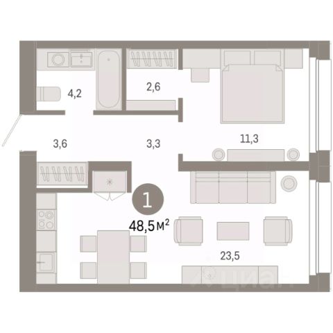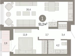 1-комн. квартира с предчистовой отделкой в ЖК "Нефть" на 2 этаже. Общая площадь: 43.08 кв.м., жилая: 11.9 кв.м., площадь просторной кухни-гостиной: 20.9 кв.м. Все окна выходят на одну сторону. В квартире один совмещенный санузел. Высота потолков 2.7 м. Дом монолитный, многоподъездный, переменной этажности, от 7 до 9 этажей. Квартира находится в 3-й секции высотой 9 этажей в корпусе 2. На этаже 8 квартир. В подъезде 1 пассажирский и 1 грузовой лифт. Окончание строительства - 3 квартал 2027 года. Оформление сделки по договору долевого участия. Квартира с кухней-гостиной и одной спальней в квартале "Нефть". Особенности планировки: предчистовая отделка. квартиры в нашей базе: НФТ02-Ж3.2.5. Квартал "Нефть" построят в микрорайоне "нефтяников". Квартал состоит из четырёх жилых домов 7 — 9 этажей с акцентной башней в 17 этажей, подземными автостоянками и помещениями коммерческого назначения. Квартал находится в юго-западной части Сургута на пересечении Набережного проспекта и улицы Артёма. В районе уже сформированная инфраструктура. Рядом расположены три детских сада, университеты, парк и спортивная база. На первых этажах квартала спроектированы коммерческие помещения под повседневные сервисы для жителей: магазины, кафе, аптеки и другие полезные функции. Дом имеет переменную высотность 717 этажей. Секции высотой 7-9 этажей подразумевают небольшое количество соседей, спокойствие и приватность. Башня высотой в 17 этажей предлагает более динамичный характер проживания, здесь будет комфортно любителям активного городского ритма жизни. Дворы приватные и предназначены только для жителей. По стандартам Брусники зелень занимает 70% территории. В квартале "Нефть" озеленение выполнено по принципу долголетия ландшафта: оно плотное, разнообразное и многоярусное. Самый верхний ярус — взрослые деревья со сформированной кроной и высокие кустарники, ниже располагаются массивы кустарников среднего размера, нижний ярус — травы, многолетники и газон. Все растения подобраны с учётом сезонности и календаря цветения и сурового климата северного города. Осенью цвет ландшафта обеспечивает листва деревьев и кустарников, летом — цветение многолетников, зимой — вечнозелёные хвойные растения и кустарники с декоративными свойствами стеблей. #ZmVBv4 Купить квартиру евродвушку в новостройке в Сургуте.