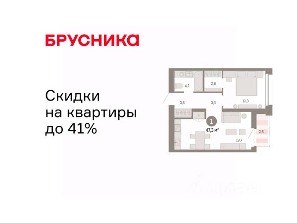 Просторная 1-комн. квартира с предчистовой отделкой в ЖК "Нефть" на 6 этаже. Общая площадь: 47.1 кв.м., жилая: 11.3 кв.м., площадь просторной кухни-гостиной: 19.7 кв.м. Все окна выходят на одну сторону. В квартире одна лоджия, один совмещенный санузел. Высота потолков 2.7 м. Дом монолитный, многоподъездный, переменной этажности, от 7 до 17 этажей. Квартира находится в 3-й секции высотой 17 этажей в корпусе 1. На этаже 8 квартир. В подъезде 1 пассажирский и 1 грузовой лифт. Окончание строительства - 2 квартал 2027 года. Оформление сделки по договору долевого участия. Квартира с кухней-гостиной и одной спальней в квартале "Нефть". Особенности планировки: предчистовая отделка. квартиры в нашей базе: НФТ01-Ж3.6.3. Квартал "Нефть" построят в микрорайоне "нефтяников". Квартал состоит из четырёх жилых домов 7 — 9 этажей с акцентной башней в 17 этажей, подземными автостоянками и помещениями коммерческого назначения. Квартал находится в юго-западной части Сургута на пересечении Набережного проспекта и улицы Артёма. В районе уже сформированная инфраструктура. Рядом расположены три детских сада, университеты, парк и спортивная база. На первых этажах квартала спроектированы коммерческие помещения под повседневные сервисы для жителей: магазины, кафе, аптеки и другие полезные функции. Дом имеет переменную высотность 717 этажей. Секции высотой 7-9 этажей подразумевают небольшое количество соседей, спокойствие и приватность. Башня высотой в 17 этажей предлагает более динамичный характер проживания, здесь будет комфортно любителям активного городского ритма жизни. Дворы приватные и предназначены только для жителей. По стандартам Брусники зелень занимает 70% территории. В квартале "Нефть" озеленение выполнено по принципу долголетия ландшафта: оно плотное, разнообразное и многоярусное. Самый верхний ярус — взрослые деревья со сформированной кроной и высокие кустарники, ниже располагаются массивы кустарников среднего размера, нижний ярус — травы, многолетники и газон. Все растения подобраны с учётом сезонности и календаря цветения и сурового климата северного города. Осенью цвет ландшафта обеспечивает листва деревьев и кустарников, летом — цветение многолетников, зимой — вечнозелёные хвойные растения и кустарники с декоративными свойствами стеблей. #Z4BF73