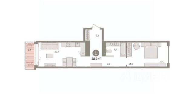 Однокомнатная квартира с предчистовой отделкой в ЖК "Новин" на 2 этаже. Общая площадь: 58.92 кв.м. Высота потолков 2.74 м. Дом монолитный, многоподъездный, переменной этажности, от 8 до 17 этажей. Квартира находится в 5-й секции высотой 17 этажей в корпусе 5. На этаже 6 квартир. В подъезде 1 пассажирский и 1 грузовой лифт. На сегодняшний день строительство окончено, дом сдан в 1 квартале 2025 года. Оформление сделки по договору купли-продажи. Квартира с кухней-гостиной и одной спальней в квартале "Новин". Особенности планировки: балкон, окна на две стороны, предчистовая отделка. квартиры в нашей базе: НС-ГП5-5-202. Квартал "Новин" расположен на западе Сургута в районе с хорошо развитой инфраструктурой. Рядом — парк "Кедровый Лог", детские сады, поликлиника, продуктовые магазины и торговые центры. До центра города — 20 минут на автомобиле. Пять домов уже заселены. Ещё три находятся на этапе возведения. Квартал находится в западной части Сургута на пересечении Югорского тракта и улицы Игоря Киртбая. Можно быстро добраться до любой точки города по Югорскому тракту. В районе уже сформированная инфраструктура. Рядом расположены крупные торговые центры, три детских сада, поликлиника, парк и спортивная база. На первых этажах квартала спроектированы коммерческие помещения под повседневные сервисы для жителей: магазины, кафе, аптеки и другие полезные функции. Проектом развития территории предусмотрено строительство детского сада и общеобразовательной школы. Во дворах предусмотрены сценарии для разных категорий жителей, в том числе и площадки для тихого отдыха с фонтаном и арт объектом. Детская площадка раскрывает игровой потенциал территории за счёт разных возможных типов взаимодействий, среди которых присутствуют: контакт с природой, смена уровня игры и контролируемый риск, сотрудничество и игра в команде, а также спокойный сценарий с качелями. Между домами второй очереди мы спроектировали общественное пространство. Здесь также расположатся спортивные и игровые площадки, велопарковки и площадь событий. Главной точкой притяжения станет фонтан. #zTlSma Продается 1-комнатная квартира в микрорайоне 35-й в городе Сургут.
