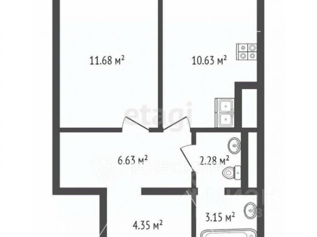 Общая площадь квартиры 43,9 кв.м., площадь кухни 8,4 кв.м., жилая площадь 17,8 кв.м., две лоджии: 6,9 кв.м. и 4,5 кв.м.
