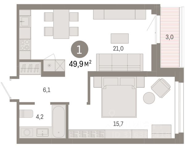 Продается однокомнатная квартира с предчистовой отделкой в ЖК "Нефть" на 4 этаже. Общая площадь: 48.29 кв.м., жилая: 11.9 кв.м., площадь просторной кухни-гостиной: 20.8 кв.м. Все окна выходят на одну сторону. В квартире два балкона, один совмещенный санузел. Высота потолков 2.7 м. Дом монолитный, многоподъездный, переменной этажности, от 7 до 9 этажей. Квартира находится в 5-й секции высотой 7 этажей в корпусе 2. На этаже 5 квартир. В подъезде 1 пассажирский и 1 грузовой лифт. Окончание строительства - 3 квартал 2027 года. Оформление сделки по договору долевого участия. Продаётся с паркингом. Квартира с кухней-гостиной и одной спальней в квартале "Нефть". Особенности планировки: гардеробная, предчистовая отделка, балкон. квартиры в нашей базе: НФТ02-Ж5.4.3. Квартал "Нефть" построят в микрорайоне "нефтяников". Квартал состоит из четырёх жилых домов 7 — 9 этажей с акцентной башней в 17 этажей, подземными автостоянками и помещениями коммерческого назначения. Квартал находится в юго-западной части Сургута на пересечении Набережного проспекта и улицы Артёма. В районе уже сформированная инфраструктура. Рядом расположены три детских сада, университеты, парк и спортивная база. На первых этажах квартала спроектированы коммерческие помещения под повседневные сервисы для жителей: магазины, кафе, аптеки и другие полезные функции. Дом имеет переменную высотность 717 этажей. Секции высотой 7-9 этажей подразумевают небольшое количество соседей, спокойствие и приватность. Башня высотой в 17 этажей предлагает более динамичный характер проживания, здесь будет комфортно любителям активного городского ритма жизни. Дворы приватные и предназначены только для жителей. По стандартам Брусники зелень занимает 70% территории. В квартале "Нефть" озеленение выполнено по принципу долголетия ландшафта: оно плотное, разнообразное и многоярусное. Самый верхний ярус — взрослые деревья со сформированной кроной и высокие кустарники, ниже располагаются массивы кустарников среднего размера, нижний ярус — травы, многолетники и газон. Все растения подобраны с учётом сезонности и календаря цветения и сурового климата северного города. Осенью цвет ландшафта обеспечивает листва деревьев и кустарников, летом — цветение многолетников, зимой — вечнозелёные хвойные растения и кустарники с декоративными свойствами стеблей. #zSDo20
