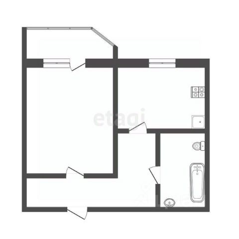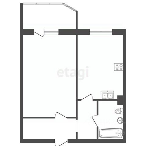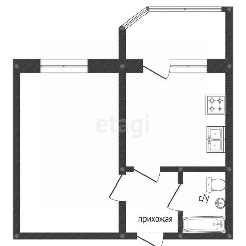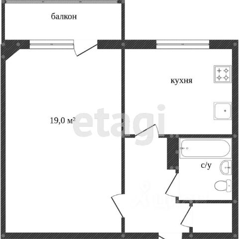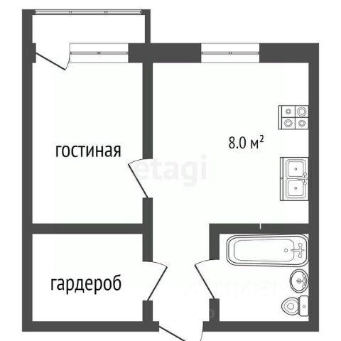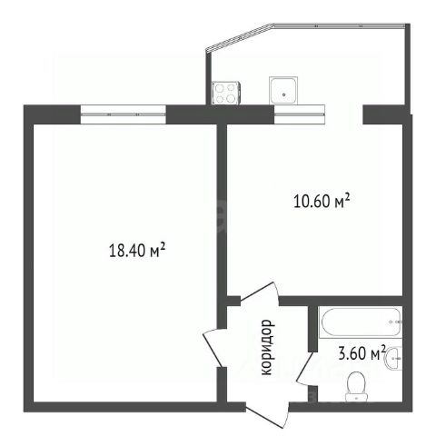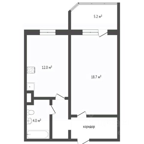Кухня-гостиная 18,7 м2, комната 12 м2, прихожая 5,2 м2, коридор 3,3 м2 санузел 4 м2, лоджия 5,2 м2, высота потолков 2,7 м2