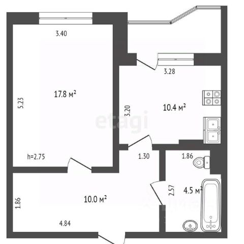 Раздельный санузел. Также в квартире имеется балкон-лоджия утепленная, соединена с комнатой.