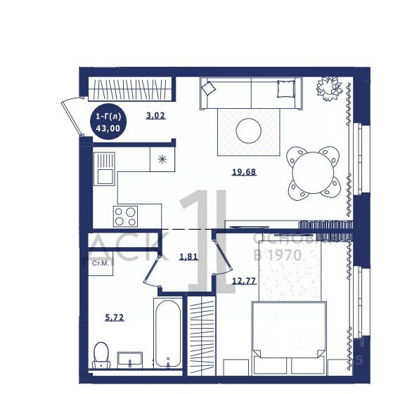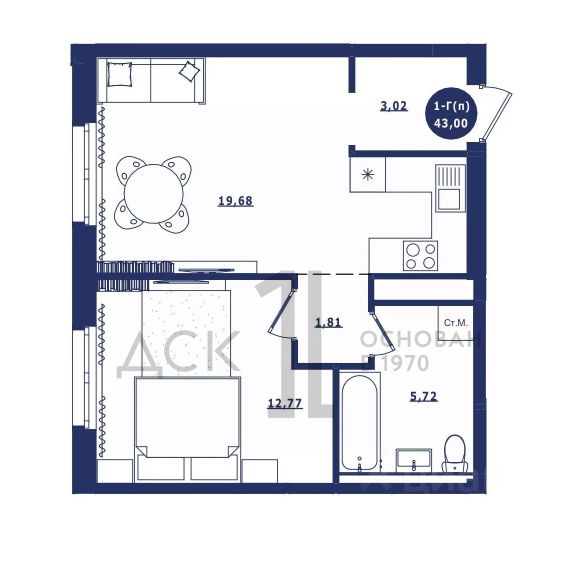 Продаётся 1-комнатная квартира в сданном доме (Дом 3 корпус 1,2), срок сдачи: IV-кв. 2023, общей площадью 43 кв.м., на 14 этаже. Новый жилой комплекс "Крылов" от застройщика "ДСК-1" расположен по адресу: г. Сургут, улица Крылова.