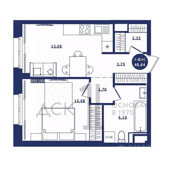 Продаётся 1-комнатная квартира в сданном доме (Дом 3 корпус 1,2), срок сдачи: IV-кв. 2023, общей площадью 40.64 кв.м., на 10 этаже. Новый жилой комплекс "Крылов" от застройщика "ДСК-1" расположен по адресу: г. Сургут, улица Крылова.