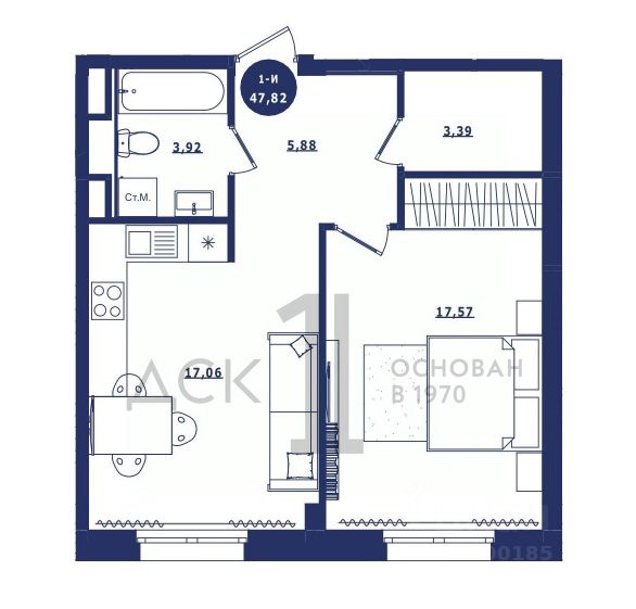 Продаётся 1-комнатная квартира в сданном доме (Дом 3 корпус 1,2), срок сдачи: IV-кв. 2023, общей площадью 47.82 кв.м., на 5 этаже. Новый жилой комплекс "Крылов" от застройщика "ДСК-1" расположен по адресу: г. Сургут, улица Крылова.