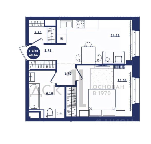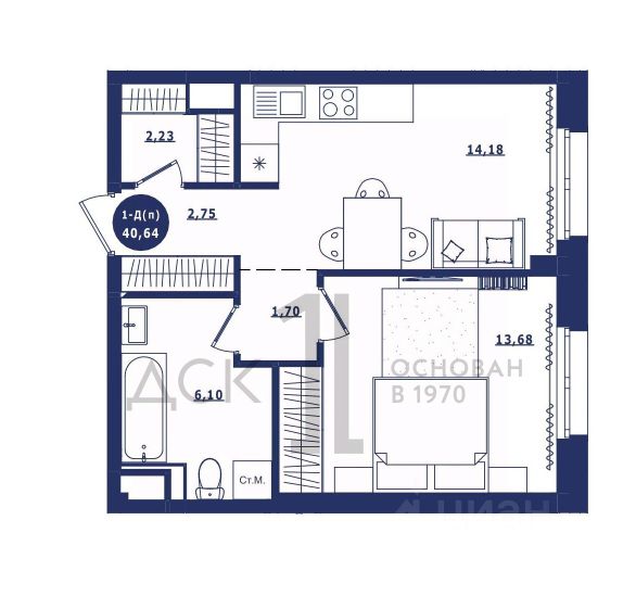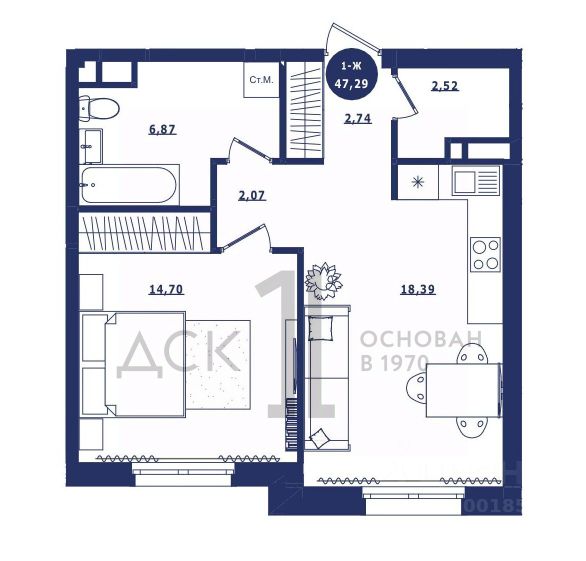 Продаётся 1-комнатная квартира в сданном доме (Дом 3 корпус 1,2), срок сдачи: IV-кв. 2023, общей площадью 40.64 кв.м., на 14 этаже. Новый жилой комплекс "Крылов" от застройщика "ДСК-1" расположен по адресу: г. Сургут, улица Крылова.