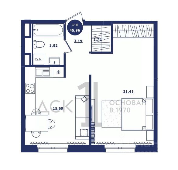 Продаётся 1-комнатная квартира в сданном доме (Дом 3 корпус 1,2), срок сдачи: IV-кв. 2023, общей площадью 45.96 кв.м., на 3 этаже. Новый жилой комплекс "Крылов" от застройщика "ДСК-1" расположен по адресу: г. Сургут, улица Крылова.