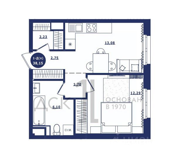 Продаётся 1-комнатная квартира в сданном доме (Дом 3 корпус 1,2), срок сдачи: IV-кв. 2023, общей площадью 38.15 кв.м., на 8 этаже. Новый жилой комплекс "Крылов" от застройщика "ДСК-1" расположен по адресу: г. Сургут, улица Крылова.