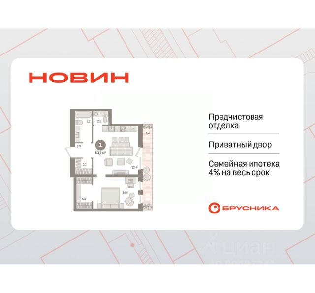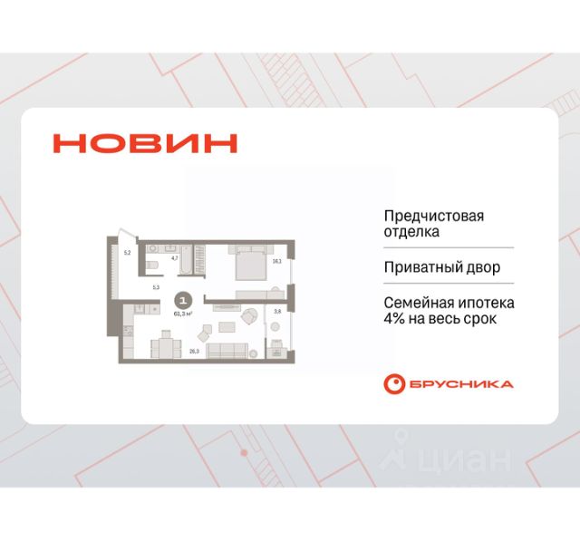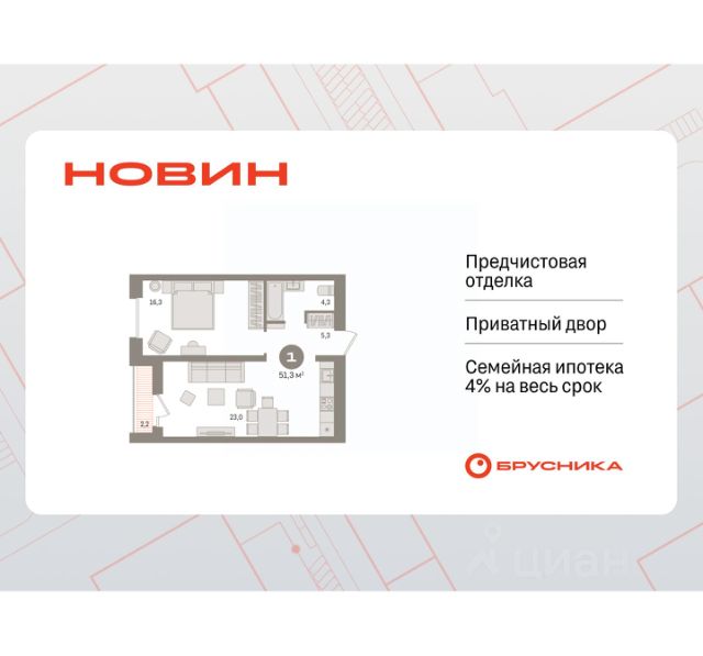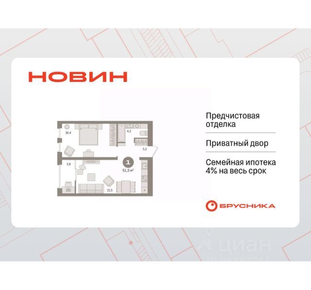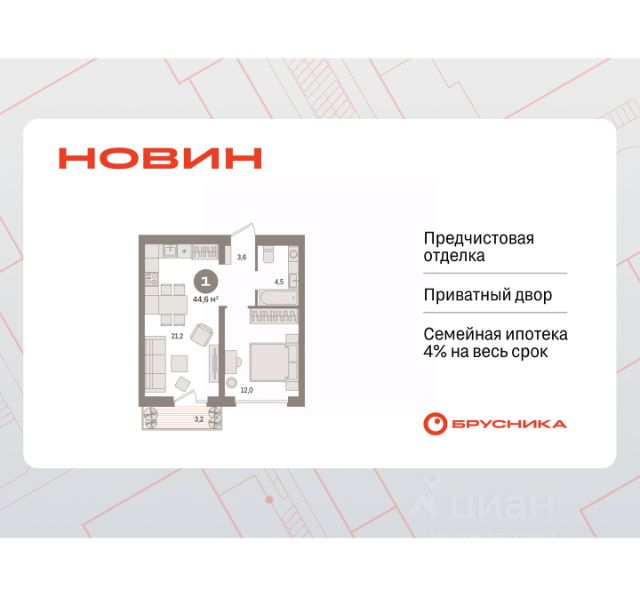 Готовые квартиры со скидкой до 35%. Звоните, мы вам все подробно расскажем! 1-комн. квартира с предчистовой отделкой в ЖК "Новин" на 2 этаже. Общая площадь: 48.15 кв.м., жилая: 12 кв.м., площадь просторной кухни-гостиной: 21.2 кв.м. Все окна выходят на одну сторону. В квартире один балкон, один совмещенный санузел. Наличие террасы в квартире открывает возможность для создания зон отдыха в кругу семьи и друзей. Высота потолков 2.7 м. Дом монолитный, многоподъездный, переменной этажности, от 8 до 17 этажей. Квартира находится в 3-й секции высотой 8 этажей в корпусе 7. На этаже 6 квартир. В подъезде 1 пассажирский и 1 грузовой лифт. Окончание строительства - 2 квартал 2027 года. Оформление сделки по договору долевого участия. Квартира с кухней-гостиной и одной спальней в квартале "Новин". Особенности планировки: вид во двор, предчистовая отделка, балкон. квартиры в нашей базе: НСВ07-Ж3.2.2. Квартал "Новин" расположен на западе Сургута в районе с хорошо развитой инфраструктурой. Рядом — парк "Кедровый Лог", детские сады, поликлиника, продуктовые магазины и торговые центры. До центра города — 20 минут на автомобиле. Пять домов уже заселены. Ещё три находятся на этапе возведения. Квартал находится в западной части Сургута на пересечении Югорского тракта и улицы Игоря Киртбая. Можно быстро добраться до любой точки города по Югорскому тракту. В районе уже сформированная инфраструктура. Рядом расположены крупные торговые центры, три детских сада, поликлиника, парк и спортивная база. На первых этажах квартала спроектированы коммерческие помещения под повседневные сервисы для жителей: магазины, кафе, аптеки и другие полезные функции. Проектом развития территории предусмотрено строительство детского сада и общеобразовательной школы. Во дворах предусмотрены сценарии для разных категорий жителей, в том числе и площадки для тихого отдыха с фонтаном и арт объектом. Детская площадка раскрывает игровой потенциал территории за счёт разных возможных типов взаимодействий, среди которых присутствуют: контакт с природой, смена уровня игры и контролируемый риск, сотрудничество и игра в команде, а также спокойный сценарий с качелями. Между домами второй очереди мы спроектировали общественное пространство. Здесь также расположатся спортивные и игровые площадки, велопарковки и площадь событий. Главной точкой притяжения станет фонтан. #2Svvmf