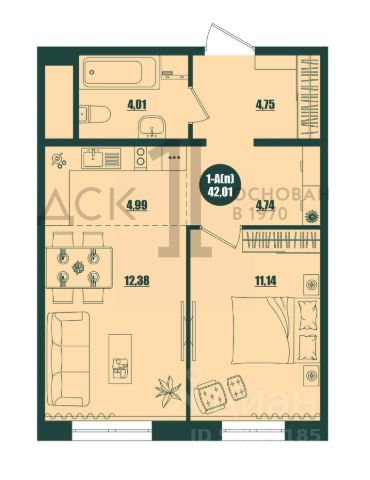 Продаётся 1-комнатная квартира в строящемся доме (Дом 4.2), срок сдачи: I-кв. 2026, общей площадью 42.01 кв.м., на 12 этаже. Новый жилой комплекс "Крылов" от застройщика "ДСК-1" расположен по адресу: г. Сургут, улица Крылова.