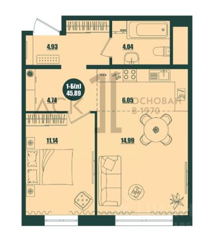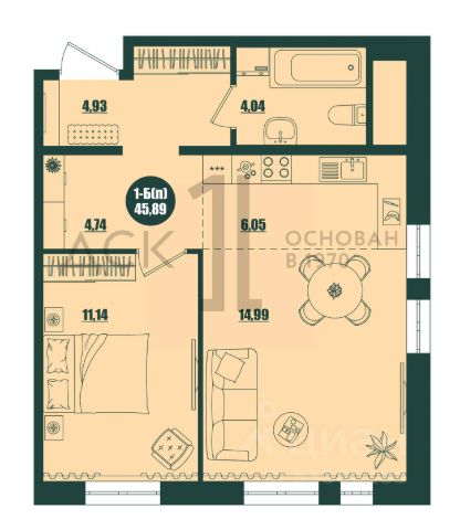 Продаётся 1-комнатная квартира в строящемся доме (Дом 4.2), срок сдачи: I-кв. 2026, общей площадью 45.89 кв.м., на 11 этаже. Новый жилой комплекс "Крылов" от застройщика "ДСК-1" расположен по адресу: г. Сургут, улица Крылова.