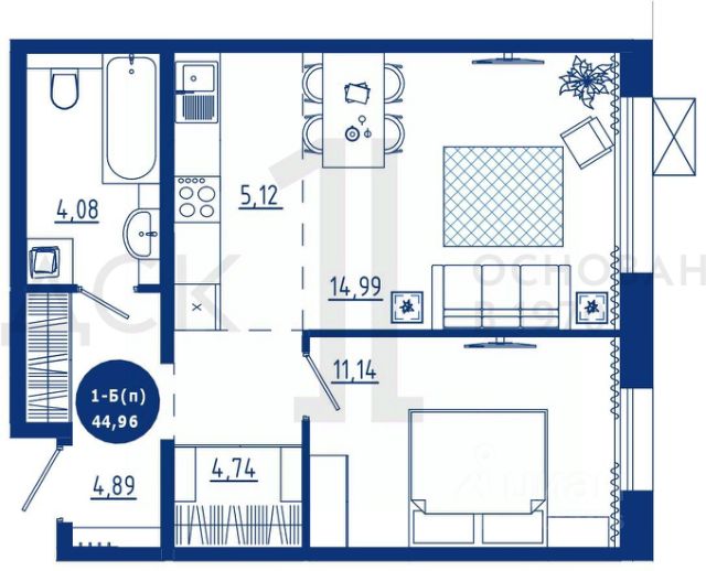 • ✅ Минимальная площадь: 36,5 м²