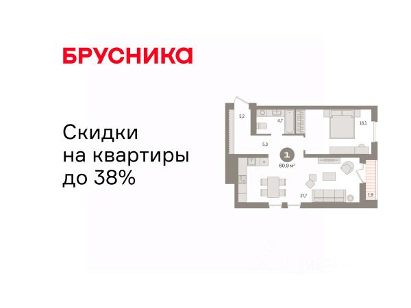 Готовые квартиры со скидкой до 35%. Звоните, наши менеджеры вам все расскажут! Продается однокомнатная квартира с предчистовой отделкой в ЖК "Новин" на 3 этаже. Общая площадь: 44.47 кв.м., жилая: 12 кв.м., площадь просторной кухни-гостиной: 21.1 кв.м. Все окна выходят на одну сторону. В квартире один балкон, один совмещенный санузел. Высота потолков 2.7 м. Дом монолитный, многоподъездный, переменной этажности, от 8 до 17 этажей. Квартира находится во 2-й секции высотой 9 этажей в корпусе 7. На этаже 7 квартир. В подъезде 1 пассажирский и 1 грузовой лифт. Окончание строительства - 2 квартал 2027 года. Оформление сделки по договору долевого участия. Квартира с кухней-гостиной и одной спальней в квартале "Новин". Особенности планировки: предчистовая отделка. квартиры в нашей базе: НСВ07-Ж2.3.7. Квартал "Новин" расположен на западе Сургута в районе с хорошо развитой инфраструктурой. Рядом — парк "Кедровый Лог", детские сады, поликлиника, продуктовые магазины и торговые центры. До центра города — 20 минут на автомобиле. Пять домов уже заселены. Ещё три находятся на этапе возведения. Квартал находится в западной части Сургута на пересечении Югорского тракта и улицы Игоря Киртбая. Можно быстро добраться до любой точки города по Югорскому тракту. В районе уже сформированная инфраструктура. Рядом расположены крупные торговые центры, три детских сада, поликлиника, парк и спортивная база. На первых этажах квартала спроектированы коммерческие помещения под повседневные сервисы для жителей: магазины, кафе, аптеки и другие полезные функции. Проектом развития территории предусмотрено строительство детского сада и общеобразовательной школы. Во дворах предусмотрены сценарии для разных категорий жителей, в том числе и площадки для тихого отдыха с фонтаном и арт объектом. Детская площадка раскрывает игровой потенциал территории за счёт разных возможных типов взаимодействий, среди которых присутствуют: контакт с природой, смена уровня игры и контролируемый риск, сотрудничество и игра в команде, а также спокойный сценарий с качелями. Между домами второй очереди мы спроектировали общественное пространство. Здесь также расположатся спортивные и игровые площадки, велопарковки и площадь событий. Главной точкой притяжения станет фонтан. #ZmAuaf