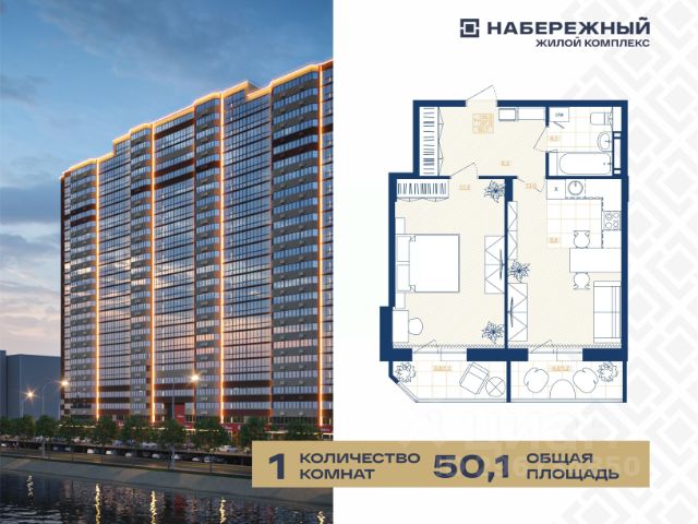 Продается уютная однокомнатная видовая квартира 195 площадью 47,6 кв.м. с двумя лоджиями и просторной кухней-гостиной площадью 18 кв.м., в жилом комплексе "Набережный". Общая площадь квартиры — 47,6 кв.м., жилая — 28,8 кв.м. Это идеальное место для комфортной жизни вашей семьи! Более того, в квартире предусмотрена большая прихожая, где можно легко разместить вещи всей семьи, не загромождая пространство. Уютная спальня станет вашим личным уголком для отдыха и восстановления сил. А современный совмещенный санузел площадью 4,1 кв.м. обеспечит вам удобство и пространство для повседневных забот. - Дом расположен рядом с набережной. Здесь вы сможете насладиться прогулками и активным отдыхом всей семьёй. - В доме вас ждут дизайнерские холлы с консьерж-службой и колясочные. - Ваша безопасность и сохранность имущества обеспечены системой видеонаблюдения. - Для удобства предусмотрен комфортный подземный и наземный паркинг. - Для детей разного возраста есть современные игровые и спортивные площадки с безопасным покрытием. - Также в доме есть отдельная площадка для выгула собак, а в каждом подъезде — мойка для лап. 25-этажный дом на стадии завершения строительства. В строительстве используются трёхслойные стеновые панели по финской технологии. Доступны скидки от застройщика и выгодные ипотечные программы, чтобы сделать покупку еще более доступной!