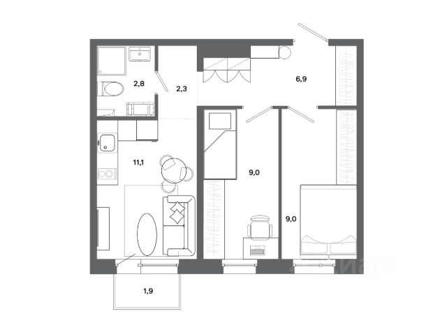 Комнаты удалены друг от друга, имеют площади 14,7 кв.м., 11,3 кв.м.