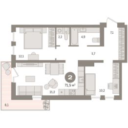Готовые квартиры со скидкой до 35%. Информация по телефону, наши менеджеры вам все расскажут! Продается двухкомнатная квартира от застройщика с предчистовой отделкой в ЖК "Новин" на 11 этаже. Общая площадь: 69.49 кв.м., жилая: 21.7 кв.м., площадь просторной кухни-гостиной: 21 кв.м. Квартира угловая, идеально подойдет любителям тишины и панорамных видов. В квартире один балкон, один совмещенный и один раздельный санузел. Терраса представляет собой роскошную зону отдыха, где вы на свой вкус можете создать атмосферу комфорта и уюта. Высота потолков 2.7 м. Дом монолитный, многоподъездный, переменной этажности, от 8 до 17 этажей. Квартира находится в 1-й секции высотой 15 этажей в корпусе 7. На этаже 7 квартир. В подъезде 1 пассажирский и 1 грузовой лифт. Окончание строительства - 2 квартал 2027 года. Оформление сделки по договору долевого участия. Квартира с кухней-гостиной и двумя спальнями в квартале "Новин". Особенности планировки: балкон, предчистовая отделка. квартиры в нашей базе: НСВ07-Ж1.11.1. Квартал "Новин" расположен на западе Сургута в районе с хорошо развитой инфраструктурой. Рядом — парк "Кедровый Лог", детские сады, поликлиника, продуктовые магазины и торговые центры. До центра города — 20 минут на автомобиле. Пять домов уже заселены. Ещё три находятся на этапе возведения. Квартал находится в западной части Сургута на пересечении Югорского тракта и улицы Игоря Киртбая. Можно быстро добраться до любой точки города по Югорскому тракту. В районе уже сформированная инфраструктура. Рядом расположены крупные торговые центры, три детских сада, поликлиника, парк и спортивная база. На первых этажах квартала спроектированы коммерческие помещения под повседневные сервисы для жителей: магазины, кафе, аптеки и другие полезные функции. Проектом развития территории предусмотрено строительство детского сада и общеобразовательной школы. Во дворах предусмотрены сценарии для разных категорий жителей, в том числе и площадки для тихого отдыха с фонтаном и арт объектом. Детская площадка раскрывает игровой потенциал территории за счёт разных возможных типов взаимодействий, среди которых присутствуют: контакт с природой, смена уровня игры и контролируемый риск, сотрудничество и игра в команде, а также спокойный сценарий с качелями. Между домами второй очереди мы спроектировали общественное пространство. Здесь также расположатся спортивные и игровые площадки, велопарковки и площадь событий. Главной точкой притяжения станет фонтан. #2sb1s4 2-комнатная квартира, примерная площадь 70 м2 в Сургуте.
