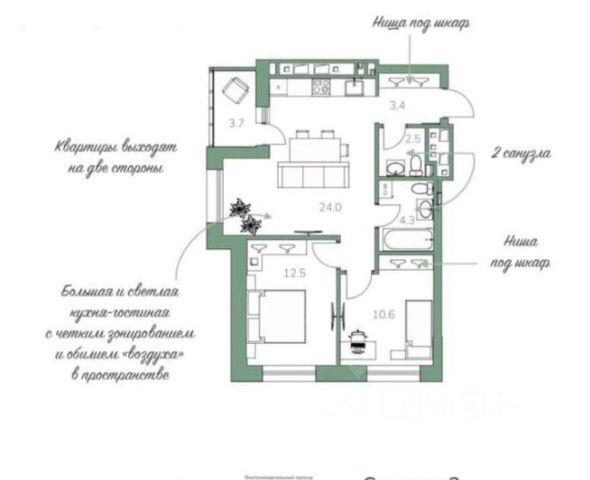2-комн. квартира с предчистовой отделкой в ЖК "Гудзон" на 11 этаже. Общая площадь: 85.08 кв.м., жилая: 60 кв.м., площадь просторной кухни-гостиной: 20 кв.м. Комнаты изолированные, все окна выходят на одну сторону. В квартире один совмещенный санузел. Высота потолков 2.72 м. Дом монолитный, многоподъездный, переменной этажности, от 2 до 17 этажей. Квартира находится в 4-й секции высотой 17 этажей в корпусе 1. На этаже 4 квартиры. В подъезде 1 пассажирский и 1 грузовой лифт. В настоящее время строительство окончено, дом сдан в 3 квартале 2023 года. Оформление сделки по договору купли-продажи. Квартира с кухней-гостиной и двумя спальнями в Гудзоне. Особенности планировки: гардеробная, французский балкон, предчистовая отделка, постирочная. квартиры в нашей базе: ПР-ГП1-4-155. "Гудзон" устроен как замкнутый квартал из разноэтажных секций по периметру с приватным двором и общественным пространством. Во дворе нет машин и посторонних людей. Высотность здания от 3 до 17 этажей делает двор светлым и обеспечивает нужную инсоляцию квартир. Рядом с домом расположена большая детская площадка для жителей. Проект находится в непосредственной близости от центральной части города на пересечении Пролетарского проспекта и улицы Университетская. Можно добраться до любой точки города. В районе уже сформирована инфраструктура. В шаговой доступности расположены школа, детские сады, спортивные комплексы, парк и торговые центры. На первых этажах квартала спроектированы коммерческие помещения под повседневные сервисы для жителей: магазины, кафе и рестораны, аптеки и другие полезные функции. Проектом развития территории предусмотрен общественный сквер в центре района. В проекте выражена идея интровертности здания: стены дома устроены вокруг внутреннего двора, который находится в центре композиции. Также здесь расположены две пешеходные арки, через которые осуществляется сквозной доступ во двор с улицы и главный вход в здание. Двор носит полуприватный характер и становится камерным лобби для жителей и гостей. Он полностью закрыт от машин. Во дворе высажены уже взрослые деревья, кустарники, цветы и злаковые травы, постелен газон. Растения размещены в грунте и дополнительно расставлены в вазонах. Во дворе предусмотрены места отдыха и прогулочные дорожки. Рядом с домом спроектирована большая детская площадка для детей разных возрастов с лестницами, горками и качелями, установлены уличные тренажёры для воркаута. #zSBUZ2