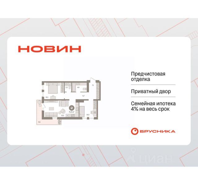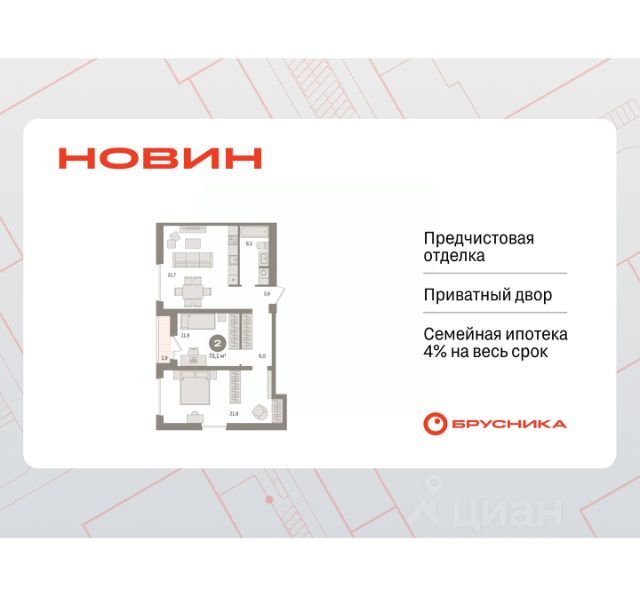 Готовые квартиры со скидкой до 35%. По всем вопросам обращайтесь в офис продаж, наши менеджеры вам все расскажут! 2-комн. квартира с предчистовой отделкой в ЖК "Новин" на 13 этаже. Общая площадь: 73.05 кв.м., жилая: 33.7 кв.м., площадь просторной кухни-гостиной: 21.7 кв.м. Квартира угловая, окна oбecпeчивaют paвнoмepнoe ocвeщeниe в тeчeниe дня. В квартире одна лоджия, один совмещенный санузел. Высота потолков 2.7 м. Дом монолитный, многоподъездный, переменной этажности, от 8 до 17 этажей. Квартира находится в 4-й секции высотой 17 этажей в корпусе 7. На этаже 6 квартир. В подъезде 1 пассажирский и 1 грузовой лифт. Окончание строительства - 2 квартал 2027 года. Оформление сделки по договору долевого участия. Квартира с кухней-гостиной и двумя спальнями в квартале "Новин". Особенности планировки: гардеробная, вид во двор, лоджия, предчистовая отделка. квартиры в нашей базе: НСВ07-Ж4.13.6. Квартал "Новин" расположен на западе Сургута в районе с хорошо развитой инфраструктурой. Рядом — парк "Кедровый Лог", детские сады, поликлиника, продуктовые магазины и торговые центры. До центра города — 20 минут на автомобиле. Пять домов уже заселены. Ещё три находятся на этапе возведения. Квартал находится в западной части Сургута на пересечении Югорского тракта и улицы Игоря Киртбая. Можно быстро добраться до любой точки города по Югорскому тракту. В районе уже сформированная инфраструктура. Рядом расположены крупные торговые центры, три детских сада, поликлиника, парк и спортивная база. На первых этажах квартала спроектированы коммерческие помещения под повседневные сервисы для жителей: магазины, кафе, аптеки и другие полезные функции. Проектом развития территории предусмотрено строительство детского сада и общеобразовательной школы. Во дворах предусмотрены сценарии для разных категорий жителей, в том числе и площадки для тихого отдыха с фонтаном и арт объектом. Детская площадка раскрывает игровой потенциал территории за счёт разных возможных типов взаимодействий, среди которых присутствуют: контакт с природой, смена уровня игры и контролируемый риск, сотрудничество и игра в команде, а также спокойный сценарий с качелями. Между домами второй очереди мы спроектировали общественное пространство. Здесь также расположатся спортивные и игровые площадки, велопарковки и площадь событий. Главной точкой притяжения станет фонтан. #2wEbvf