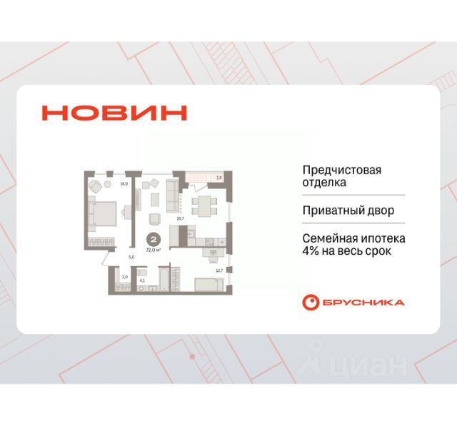 Готовые квартиры со скидкой до 35%. По всем вопросам звоните в офис продаж, наши менеджеры вам все расскажут! 2-комн. квартира от застройщика с предчистовой отделкой в ЖК "Новин" на 16 этаже. Общая площадь: 71.99 кв.м., жилая: 28.7 кв.м., площадь просторной кухни-гостиной: 29.7 кв.м. Квартира угловая, окна oбecпeчивaют paвнoмepнoe ocвeщeниe в тeчeниe дня. В квартире одна лоджия, один совмещенный санузел. Высота потолков 2.7 м. Дом монолитный, многоподъездный, переменной этажности, от 8 до 17 этажей. Квартира находится в 4-й секции высотой 17 этажей в корпусе 7. На этаже 6 квартир. В подъезде 1 пассажирский и 1 грузовой лифт. Окончание строительства - 2 квартал 2027 года. Оформление сделки по договору долевого участия. Квартира с кухней-гостиной и двумя спальнями в квартале "Новин". Особенности планировки: гардеробная, лоджия, разнесённые спальни, предчистовая отделка. квартиры в нашей базе: НСВ07-Ж4.16.2. Квартал "Новин" расположен на западе Сургута в районе с хорошо развитой инфраструктурой. Рядом — парк "Кедровый Лог", детские сады, поликлиника, продуктовые магазины и торговые центры. До центра города — 20 минут на автомобиле. Пять домов уже заселены. Ещё три находятся на этапе возведения. Квартал находится в западной части Сургута на пересечении Югорского тракта и улицы Игоря Киртбая. Можно быстро добраться до любой точки города по Югорскому тракту. В районе уже сформированная инфраструктура. Рядом расположены крупные торговые центры, три детских сада, поликлиника, парк и спортивная база. На первых этажах квартала спроектированы коммерческие помещения под повседневные сервисы для жителей: магазины, кафе, аптеки и другие полезные функции. Проектом развития территории предусмотрено строительство детского сада и общеобразовательной школы. Во дворах предусмотрены сценарии для разных категорий жителей, в том числе и площадки для тихого отдыха с фонтаном и арт объектом. Детская площадка раскрывает игровой потенциал территории за счёт разных возможных типов взаимодействий, среди которых присутствуют: контакт с природой, смена уровня игры и контролируемый риск, сотрудничество и игра в команде, а также спокойный сценарий с качелями. Между домами второй очереди мы спроектировали общественное пространство. Здесь также расположатся спортивные и игровые площадки, велопарковки и площадь событий. Главной точкой притяжения станет фонтан. #ZsBiWB