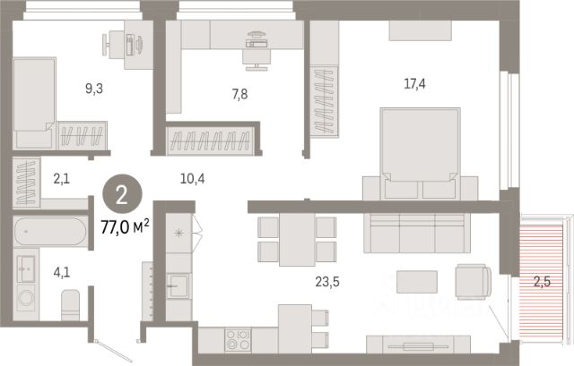 Продаётся 2-комнатная квартира в строящемся доме (НФТ1), срок сдачи: II-кв. 2027, общей площадью 77 кв.м., на 4 этаже. Новый жилой комплекс "по пр. Набережный" от застройщика "Брусника" расположен по адресу: г. Сургут, Набережный проспект.