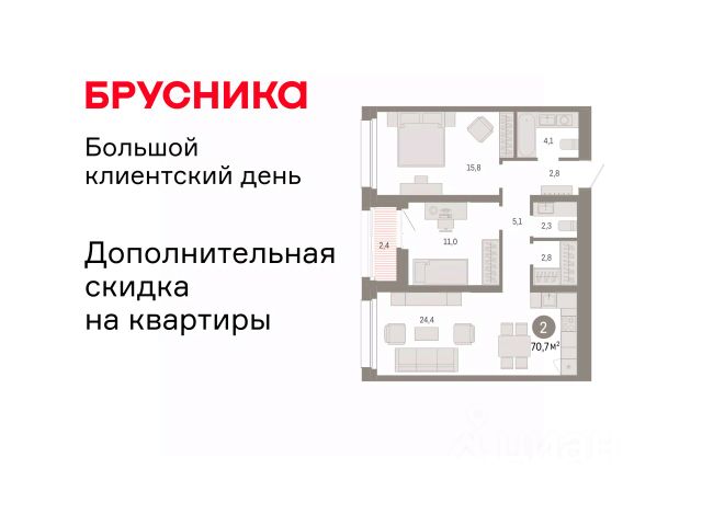 Продается 2-комн. квартира с предчистовой отделкой в ЖК "Нефть" на 4 этаже. Общая площадь: 70.7 кв.м., жилая: 26.8 кв.м., площадь просторной кухни-гостиной: 24.4 кв.м. Комнаты изолированные, все окна выходят на одну сторону. В квартире одна лоджия, один совмещенный и один раздельный санузел. Высота потолков 2.7 м. Дом монолитный, многоподъездный, переменной этажности, от 7 до 17 этажей. Квартира находится в 3-й секции высотой 17 этажей в корпусе 1. На этаже 8 квартир. В подъезде 1 пассажирский и 1 грузовой лифт. Окончание строительства - 2 квартал 2027 года. Оформление сделки по договору долевого участия. Квартира с кухней-гостиной и двумя спальнями в квартале "Нефть". Особенности планировки: вид во двор, второй санузел, гардеробная, лоджия, предчистовая отделка. квартиры в нашей базе: НФТ01-Ж3.4.7. Квартал "Нефть" построят в микрорайоне "нефтяников". Квартал состоит из четырёх жилых домов 7 — 9 этажей с акцентной башней в 17 этажей, подземными автостоянками и помещениями коммерческого назначения. Квартал находится в юго-западной части Сургута на пересечении Набережного проспекта и улицы Артёма. В районе уже сформированная инфраструктура. Рядом расположены три детских сада, университеты, парк и спортивная база. На первых этажах квартала спроектированы коммерческие помещения под повседневные сервисы для жителей: магазины, кафе, аптеки и другие полезные функции. Дом имеет переменную высотность 717 этажей. Секции высотой 7-9 этажей подразумевают небольшое количество соседей, спокойствие и приватность. Башня высотой в 17 этажей предлагает более динамичный характер проживания, здесь будет комфортно любителям активного городского ритма жизни. Дворы приватные и предназначены только для жителей. По стандартам Брусники зелень занимает 70% территории. В квартале "Нефть" озеленение выполнено по принципу долголетия ландшафта: оно плотное, разнообразное и многоярусное. Самый верхний ярус — взрослые деревья со сформированной кроной и высокие кустарники, ниже располагаются массивы кустарников среднего размера, нижний ярус — травы, многолетники и газон. Все растения подобраны с учётом сезонности и календаря цветения и сурового климата северного города. Осенью цвет ландшафта обеспечивает листва деревьев и кустарников, летом — цветение многолетников, зимой — вечнозелёные хвойные растения и кустарники с декоративными свойствами стеблей. #zsB1Z8
