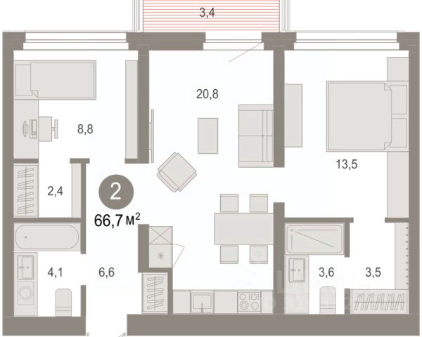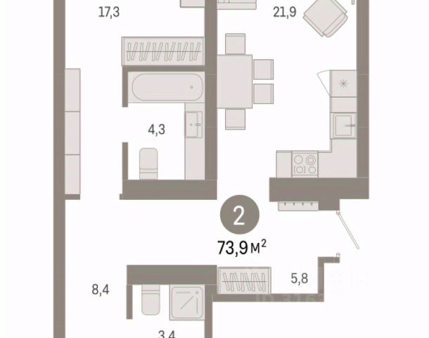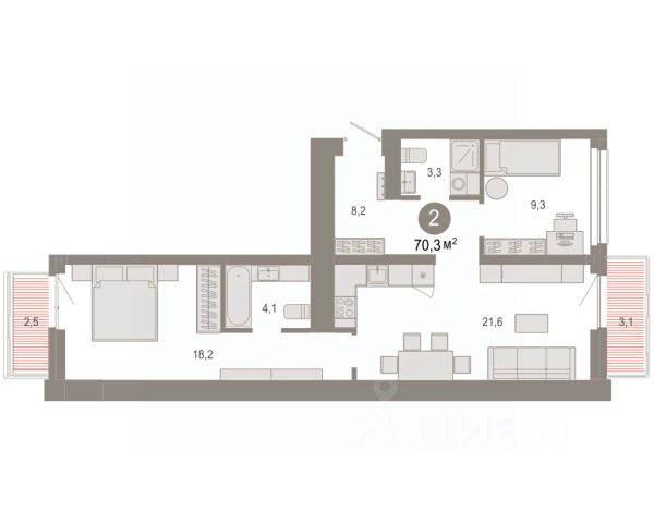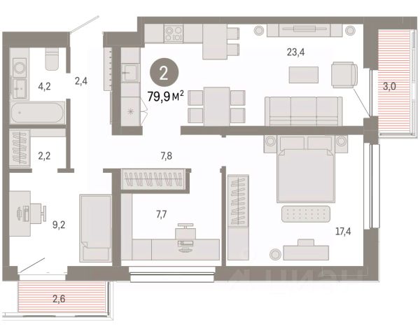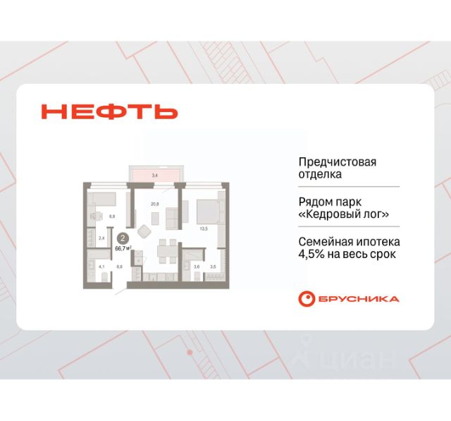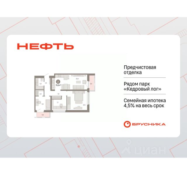 2-комн. квартира с предчистовой отделкой в ЖК "Нефть" на 5 этаже. Общая площадь: 61.62 кв.м., жилая: 21.6 кв.м., площадь просторной кухни-гостиной: 17.1 кв.м. Комнаты изолированные, все окна выходят на одну сторону. В квартире две лоджии, два совмещенных санузла. Высота потолков 2.7 м. Дом монолитный, многоподъездный, переменной этажности, от 7 до 9 этажей. Квартира находится в 6-й секции высотой 9 этажей в корпусе 2. На этаже 5 квартир. В подъезде 1 пассажирский и 1 грузовой лифт. Окончание строительства - 3 квартал 2027 года. Оформление сделки по договору долевого участия. Квартира с кухней-гостиной и двумя спальнями в квартале "Нефть". Особенности планировки: гардеробная, лоджия, разнесённые спальни, предчистовая отделка, мастер-спальня. квартиры в нашей базе: НФТ02-Ж6.5.3. Квартал "Нефть" построят в микрорайоне "нефтяников". Квартал состоит из четырёх жилых домов 7 — 9 этажей с акцентной башней в 17 этажей, подземными автостоянками и помещениями коммерческого назначения. Квартал находится в юго-западной части Сургута на пересечении Набережного проспекта и улицы Артёма. В районе уже сформированная инфраструктура. Рядом расположены три детских сада, университеты, парк и спортивная база. На первых этажах квартала спроектированы коммерческие помещения под повседневные сервисы для жителей: магазины, кафе, аптеки и другие полезные функции. Дом имеет переменную высотность 717 этажей. Секции высотой 7-9 этажей подразумевают небольшое количество соседей, спокойствие и приватность. Башня высотой в 17 этажей предлагает более динамичный характер проживания, здесь будет комфортно любителям активного городского ритма жизни. Дворы приватные и предназначены только для жителей. По стандартам Брусники зелень занимает 70% территории. В квартале "Нефть" озеленение выполнено по принципу долголетия ландшафта: оно плотное, разнообразное и многоярусное. Самый верхний ярус — взрослые деревья со сформированной кроной и высокие кустарники, ниже располагаются массивы кустарников среднего размера, нижний ярус — травы, многолетники и газон. Все растения подобраны с учётом сезонности и календаря цветения и сурового климата северного города. Осенью цвет ландшафта обеспечивает листва деревьев и кустарников, летом — цветение многолетников, зимой — вечнозелёные хвойные растения и кустарники с декоративными свойствами стеблей. #ZSd0Zm