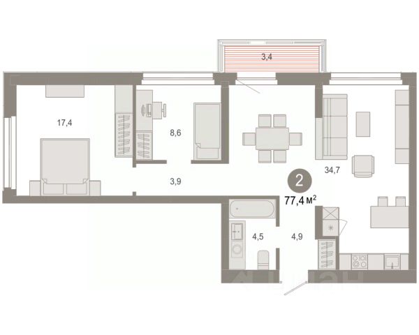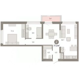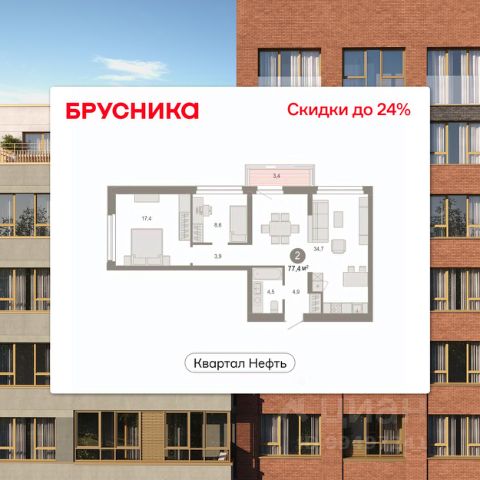 Двухкомнатная квартира с предчистовой отделкой в ЖК "Нефть" на 5 этаже. Общая площадь: 73.94 кв.м., жилая: 26.9 кв.м., площадь просторной кухни-гостиной: 21.9 кв.м. Квартира - распашонка, без проходных комнат, окна выходят на paзные стороны дома. В квартире один балкон, два совмещенных санузла. Высота потолков 2.7 м. Дом монолитный, многоподъездный, переменной этажности, от 7 до 9 этажей. Квартира находится в 3-й секции высотой 9 этажей в корпусе 2. На этаже 8 квартир. В подъезде 1 пассажирский и 1 грузовой лифт. Окончание строительства - 3 квартал 2027 года. Оформление сделки по договору долевого участия. Квартира с кухней-гостиной и двумя спальнями в квартале "Нефть". Особенности планировки: балкон, вид во двор, гардеробная, мастер-спальня, окна на две стороны, предчистовая отделка, разнесённые спальни. квартиры в нашей базе: НФТ02-Ж3.5.1. Квартал "Нефть" построят в микрорайоне "нефтяников". Квартал состоит из четырёх жилых домов 7 — 9 этажей с акцентной башней в 17 этажей, подземными автостоянками и помещениями коммерческого назначения. Квартал находится в юго-западной части Сургута на пересечении Набережного проспекта и улицы Артёма. В районе уже сформированная инфраструктура. Рядом расположены три детских сада, университеты, парк и спортивная база. На первых этажах квартала спроектированы коммерческие помещения под повседневные сервисы для жителей: магазины, кафе, аптеки и другие полезные функции. Дом имеет переменную высотность 717 этажей. Секции высотой 7-9 этажей подразумевают небольшое количество соседей, спокойствие и приватность. Башня высотой в 17 этажей предлагает более динамичный характер проживания, здесь будет комфортно любителям активного городского ритма жизни. Дворы приватные и предназначены только для жителей. По стандартам Брусники зелень занимает 70% территории. В квартале "Нефть" озеленение выполнено по принципу долголетия ландшафта: оно плотное, разнообразное и многоярусное. Самый верхний ярус — взрослые деревья со сформированной кроной и высокие кустарники, ниже располагаются массивы кустарников среднего размера, нижний ярус — травы, многолетники и газон. Все растения подобраны с учётом сезонности и календаря цветения и сурового климата северного города. Осенью цвет ландшафта обеспечивает листва деревьев и кустарников, летом — цветение многолетников, зимой — вечнозелёные хвойные растения и кустарники с декоративными свойствами стеблей.