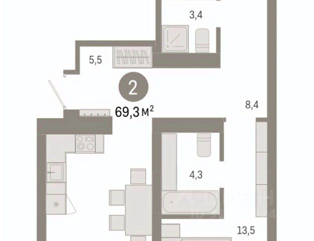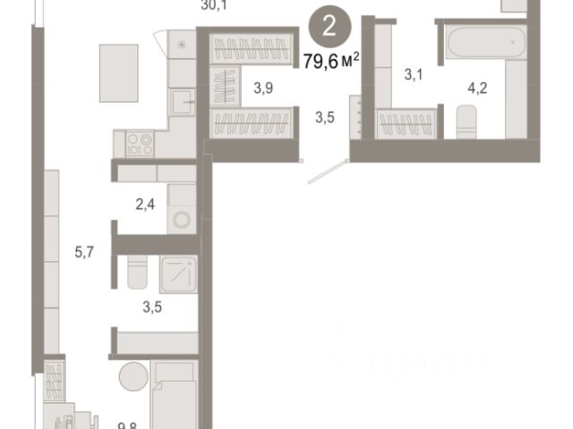 Двухкомнатная квартира с предчистовой отделкой в ЖК "Нефть" на 9 этаже. Общая площадь: 70.7 кв.м., жилая: 26.8 кв.м., площадь просторной кухни-гостиной: 24.4 кв.м. Комнаты изолированные, все окна выходят на одну сторону. В квартире одна лоджия, один совмещенный и один раздельный санузел. Высота потолков 2.7 м. Дом монолитный, многоподъездный, переменной этажности, от 7 до 17 этажей. Квартира находится в 3-й секции высотой 17 этажей в корпусе 1. На этаже 8 квартир. В подъезде 1 пассажирский и 1 грузовой лифт. Окончание строительства - 2 квартал 2027 года. Оформление сделки по договору долевого участия. Квартира с кухней-гостиной и двумя спальнями в квартале "Нефть". Особенности планировки: второй санузел, гардеробная, вид во двор, лоджия, предчистовая отделка. квартиры в нашей базе: НФТ01-Ж3.9.7. Квартал "Нефть" построят в микрорайоне "нефтяников". Квартал состоит из четырёх жилых домов 7 — 9 этажей с акцентной башней в 17 этажей, подземными автостоянками и помещениями коммерческого назначения. Квартал находится в юго-западной части Сургута на пересечении Набережного проспекта и улицы Артёма. В районе уже сформированная инфраструктура. Рядом расположены три детских сада, университеты, парк и спортивная база. На первых этажах квартала спроектированы коммерческие помещения под повседневные сервисы для жителей: магазины, кафе, аптеки и другие полезные функции. Дом имеет переменную высотность 717 этажей. Секции высотой 7-9 этажей подразумевают небольшое количество соседей, спокойствие и приватность. Башня высотой в 17 этажей предлагает более динамичный характер проживания, здесь будет комфортно любителям активного городского ритма жизни. Дворы приватные и предназначены только для жителей. По стандартам Брусники зелень занимает 70% территории. В квартале "Нефть" озеленение выполнено по принципу долголетия ландшафта: оно плотное, разнообразное и многоярусное. Самый верхний ярус — взрослые деревья со сформированной кроной и высокие кустарники, ниже располагаются массивы кустарников среднего размера, нижний ярус — травы, многолетники и газон. Все растения подобраны с учётом сезонности и календаря цветения и сурового климата северного города. Осенью цвет ландшафта обеспечивает листва деревьев и кустарников, летом — цветение многолетников, зимой — вечнозелёные хвойные растения и кустарники с декоративными свойствами стеблей. #ZwbfSF