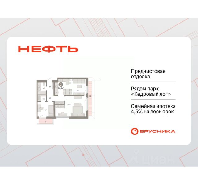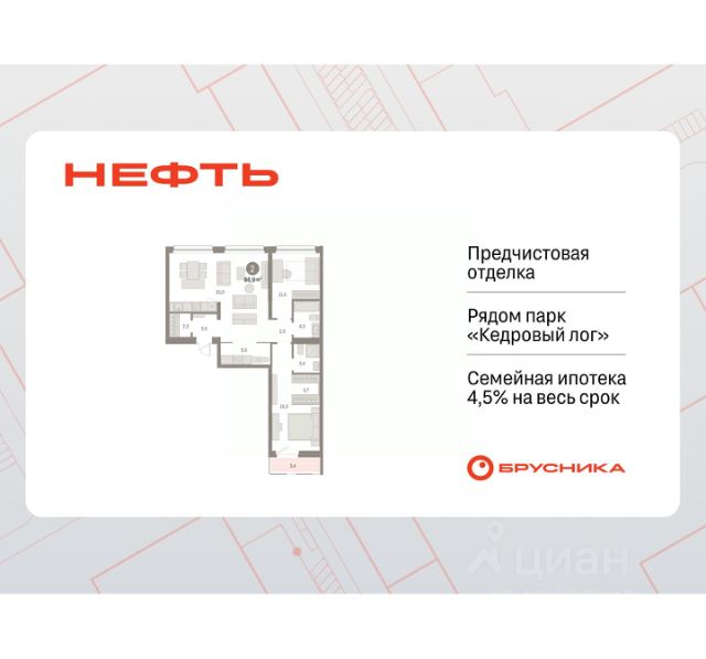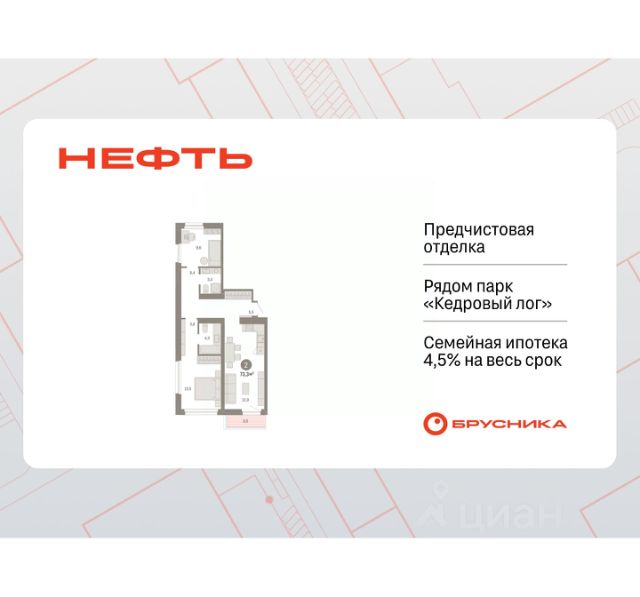 Просторная 2-комн. квартира с предчистовой отделкой в ЖК "Нефть" на 9 этаже. Общая площадь: 61.68 кв.м., жилая: 21.7 кв.м., площадь просторной кухни-гостиной: 17.2 кв.м. Комнаты изолированные, все окна выходят на одну сторону. В квартире две лоджии, два совмещенных санузла. Высота потолков 2.7 м. Дом монолитный, многоподъездный, переменной этажности, от 7 до 9 этажей. Квартира находится в 6-й секции высотой 9 этажей в корпусе 2. На этаже 5 квартир. В подъезде 1 пассажирский и 1 грузовой лифт. Окончание строительства - 3 квартал 2027 года. Оформление сделки по договору долевого участия. Квартира с кухней-гостиной и двумя спальнями в квартале "Нефть". Особенности планировки: гардеробная, лоджия, мастер-спальня, окна в пол, предчистовая отделка, разнесённые спальни. квартиры в нашей базе: НФТ02-Ж6.9.3. Квартал "Нефть" построят в микрорайоне "нефтяников". Квартал состоит из четырёх жилых домов 7 — 9 этажей с акцентной башней в 17 этажей, подземными автостоянками и помещениями коммерческого назначения. Квартал находится в юго-западной части Сургута на пересечении Набережного проспекта и улицы Артёма. В районе уже сформированная инфраструктура. Рядом расположены три детских сада, университеты, парк и спортивная база. На первых этажах квартала спроектированы коммерческие помещения под повседневные сервисы для жителей: магазины, кафе, аптеки и другие полезные функции. Дом имеет переменную высотность 717 этажей. Секции высотой 7-9 этажей подразумевают небольшое количество соседей, спокойствие и приватность. Башня высотой в 17 этажей предлагает более динамичный характер проживания, здесь будет комфортно любителям активного городского ритма жизни. Дворы приватные и предназначены только для жителей. По стандартам Брусники зелень занимает 70% территории. В квартале "Нефть" озеленение выполнено по принципу долголетия ландшафта: оно плотное, разнообразное и многоярусное. Самый верхний ярус — взрослые деревья со сформированной кроной и высокие кустарники, ниже располагаются массивы кустарников среднего размера, нижний ярус — травы, многолетники и газон. Все растения подобраны с учётом сезонности и календаря цветения и сурового климата северного города. Осенью цвет ландшафта обеспечивает листва деревьев и кустарников, летом — цветение многолетников, зимой — вечнозелёные хвойные растения и кустарники с декоративными свойствами стеблей. #2sdOAV