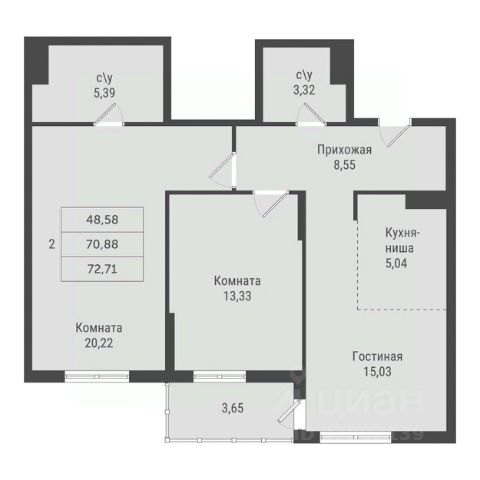 • ✅ Объект наибольшей площади: 72,7 м²