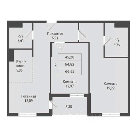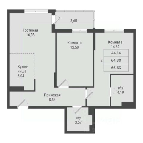 • ✅ Минимальная площадь: 64,4 м²