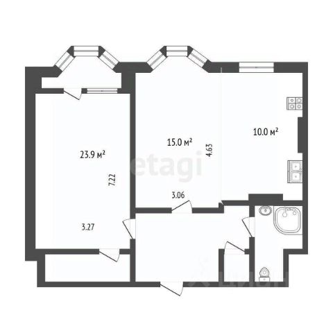 Блочный дом. Общая площадь 51,5 кв.м., жилая площадь 30,3 кв.м., кухня 7,3 кв.м.
