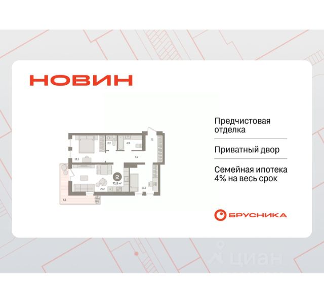 Готовые квартиры со скидкой до 35%. Звоните, мы вам все подробно расскажем! Продается 2-комн. квартира с предчистовой отделкой в ЖК "Новин" на 3 этаже. Общая площадь: 69.45 кв.м., жилая: 21.7 кв.м., площадь просторной кухни-гостиной: 21 кв.м. Угловая квартира, идеально подойдет любителям тишины и панорамных видов. В квартире один балкон, один совмещенный и один раздельный санузел. Терраса представляет собой роскошную зону отдыха, где вы на свой вкус можете создать атмосферу комфорта и уюта. Высота потолков 2.7 м. Дом монолитный, многоподъездный, переменной этажности, от 8 до 17 этажей. Квартира находится в 1-й секции высотой 15 этажей в корпусе 7. На этаже 7 квартир. В подъезде 1 пассажирский и 1 грузовой лифт. Окончание строительства - 2 квартал 2027 года. Оформление сделки по договору долевого участия. Квартира с кухней-гостиной и двумя спальнями в квартале "Новин". Особенности планировки: второй санузел, гардеробная, вид во двор, предчистовая отделка, балкон. квартиры в нашей базе: НСВ07-Ж1.3.1. Квартал "Новин" расположен на западе Сургута в районе с хорошо развитой инфраструктурой. Рядом — парк "Кедровый Лог", детские сады, поликлиника, продуктовые магазины и торговые центры. До центра города — 20 минут на автомобиле. Пять домов уже заселены. Ещё три находятся на этапе возведения. Квартал находится в западной части Сургута на пересечении Югорского тракта и улицы Игоря Киртбая. Можно быстро добраться до любой точки города по Югорскому тракту. В районе уже сформированная инфраструктура. Рядом расположены крупные торговые центры, три детских сада, поликлиника, парк и спортивная база. На первых этажах квартала спроектированы коммерческие помещения под повседневные сервисы для жителей: магазины, кафе, аптеки и другие полезные функции. Проектом развития территории предусмотрено строительство детского сада и общеобразовательной школы. Во дворах предусмотрены сценарии для разных категорий жителей, в том числе и площадки для тихого отдыха с фонтаном и арт объектом. Детская площадка раскрывает игровой потенциал территории за счёт разных возможных типов взаимодействий, среди которых присутствуют: контакт с природой, смена уровня игры и контролируемый риск, сотрудничество и игра в команде, а также спокойный сценарий с качелями. Между домами второй очереди мы спроектировали общественное пространство. Здесь также расположатся спортивные и игровые площадки, велопарковки и площадь событий. Главной точкой притяжения станет фонтан. #Z4eb10 Продам 2-комнатную квартиру в микрорайоне 35-й в городе Сургут.