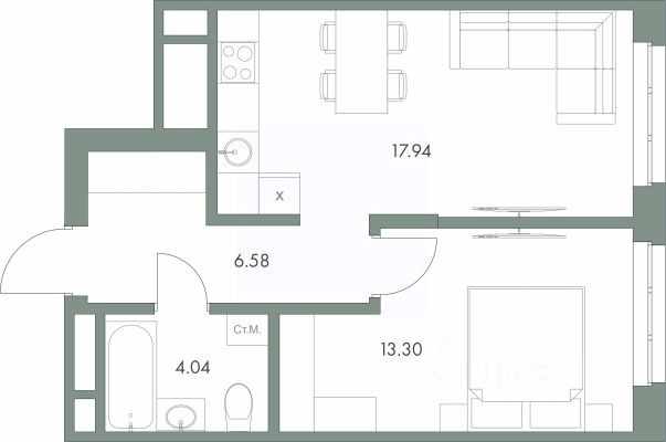 Готовые квартиры со скидкой до 35%. Информация по телефону, мы вам все подробно расскажем! 1-комн. квартира с предчистовой отделкой в ЖК "Новин" на 2 этаже. Общая площадь: 58.83 кв.м., жилая: 18.9 кв.м., площадь просторной кухни-гостиной: 19.4 кв.м. Все окна выходят на одну сторону. В квартире один балкон, один совмещенный санузел. Наличие террасы в квартире открывает возможность для создания зон отдыха в кругу семьи и друзей. Высота потолков 2.7 м. Дом монолитный, многоподъездный, переменной этажности, от 8 до 17 этажей. Квартира находится в 1-й секции высотой 15 этажей в корпусе 7. На этаже 7 квартир. В подъезде 1 пассажирский и 1 грузовой лифт. Окончание строительства - 2 квартал 2027 года. Оформление сделки по договору долевого участия. Квартира с кухней-гостиной и одной спальней в квартале "Новин". Особенности планировки: вид во двор, предчистовая отделка, балкон. квартиры в нашей базе: НСВ07-Ж1.2.7. Квартал "Новин" расположен на западе Сургута в районе с хорошо развитой инфраструктурой. Рядом — парк "Кедровый Лог", детские сады, поликлиника, продуктовые магазины и торговые центры. До центра города — 20 минут на автомобиле. Пять домов уже заселены. Ещё три находятся на этапе возведения. Квартал находится в западной части Сургута на пересечении Югорского тракта и улицы Игоря Киртбая. Можно быстро добраться до любой точки города по Югорскому тракту. В районе уже сформированная инфраструктура. Рядом расположены крупные торговые центры, три детских сада, поликлиника, парк и спортивная база. На первых этажах квартала спроектированы коммерческие помещения под повседневные сервисы для жителей: магазины, кафе, аптеки и другие полезные функции. Проектом развития территории предусмотрено строительство детского сада и общеобразовательной школы. Во дворах предусмотрены сценарии для разных категорий жителей, в том числе и площадки для тихого отдыха с фонтаном и арт объектом. Детская площадка раскрывает игровой потенциал территории за счёт разных возможных типов взаимодействий, среди которых присутствуют: контакт с природой, смена уровня игры и контролируемый риск, сотрудничество и игра в команде, а также спокойный сценарий с качелями. Между домами второй очереди мы спроектировали общественное пространство. Здесь также расположатся спортивные и игровые площадки, велопарковки и площадь событий. Главной точкой притяжения станет фонтан. #2Webv1