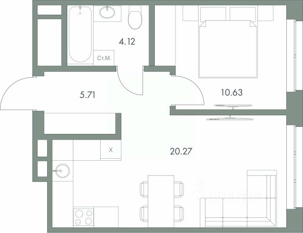 Готовые квартиры со скидкой до 35%. Информация по телефону, мы вам все подробно расскажем! Продается 1-комн. квартира от застройщика с предчистовой отделкой в ЖК "Новин" на 6 этаже. Общая площадь: 44.54 кв.м., жилая: 12 кв.м., площадь просторной кухни-гостиной: 21.2 кв.м. Все окна выходят на одну сторону. В квартире один балкон, один совмещенный санузел. Высота потолков 2.7 м. Дом монолитный, многоподъездный, переменной этажности, от 8 до 17 этажей. Квартира находится в 3-й секции высотой 8 этажей в корпусе 7. На этаже 6 квартир. В подъезде 1 пассажирский и 1 грузовой лифт. Окончание строительства - 2 квартал 2027 года. Оформление сделки по договору долевого участия. Квартира с кухней-гостиной и одной спальней в квартале "Новин". Особенности планировки: вид во двор, предчистовая отделка, балкон. квартиры в нашей базе: НСВ07-Ж3.6.5. Квартал "Новин" расположен на западе Сургута в районе с хорошо развитой инфраструктурой. Рядом — парк "Кедровый Лог", детские сады, поликлиника, продуктовые магазины и торговые центры. До центра города — 20 минут на автомобиле. Пять домов уже заселены. Ещё три находятся на этапе возведения. Квартал находится в западной части Сургута на пересечении Югорского тракта и улицы Игоря Киртбая. Можно быстро добраться до любой точки города по Югорскому тракту. В районе уже сформированная инфраструктура. Рядом расположены крупные торговые центры, три детских сада, поликлиника, парк и спортивная база. На первых этажах квартала спроектированы коммерческие помещения под повседневные сервисы для жителей: магазины, кафе, аптеки и другие полезные функции. Проектом развития территории предусмотрено строительство детского сада и общеобразовательной школы. Во дворах предусмотрены сценарии для разных категорий жителей, в том числе и площадки для тихого отдыха с фонтаном и арт объектом. Детская площадка раскрывает игровой потенциал территории за счёт разных возможных типов взаимодействий, среди которых присутствуют: контакт с природой, смена уровня игры и контролируемый риск, сотрудничество и игра в команде, а также спокойный сценарий с качелями. Между домами второй очереди мы спроектировали общественное пространство. Здесь также расположатся спортивные и игровые площадки, велопарковки и площадь событий. Главной точкой притяжения станет фонтан. #2SCca4