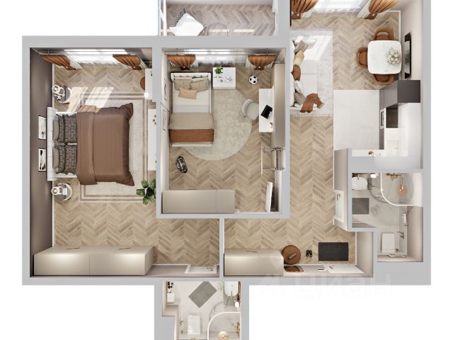 Квартира с кухней-гостиной и тремя спальнями в Гудзоне. Особенности планировки: окна на две стороны, второй санузел, окна в пол, вид во двор, отдельный вход, свободная планировка, терраса.